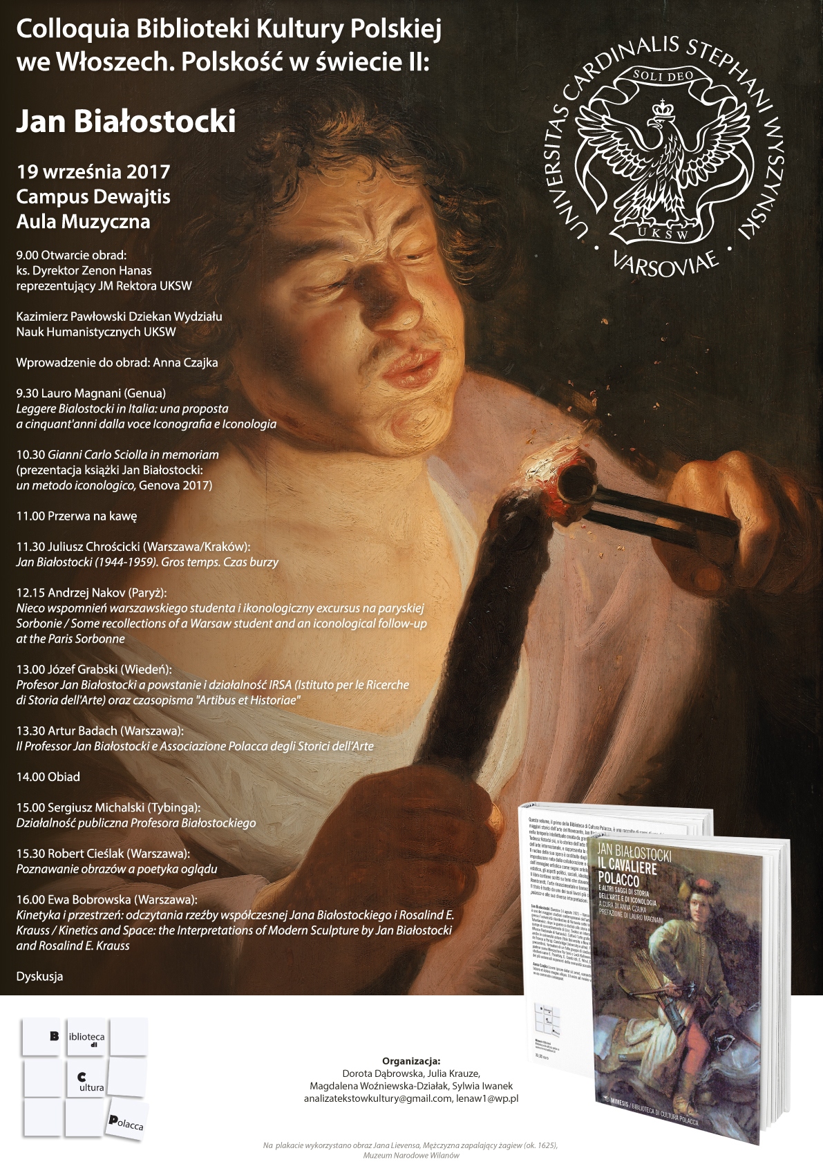 Zapraszamy na międzynarodowe sympozjum z cyklu Colloquia Biblioteki Kultury Polskiej we Włoszech. Polskość we Włoszech II: Jan Białostocki, zorganizowane w ramach umowy bilateralnej z Uniwersytetem w Genui i we współpracy ze Stowarzyszeniem Historyków Sztuki, które odbędzie się 19 września na UKSW, na kampusie Dewajtis, w Auli Muzycznej.