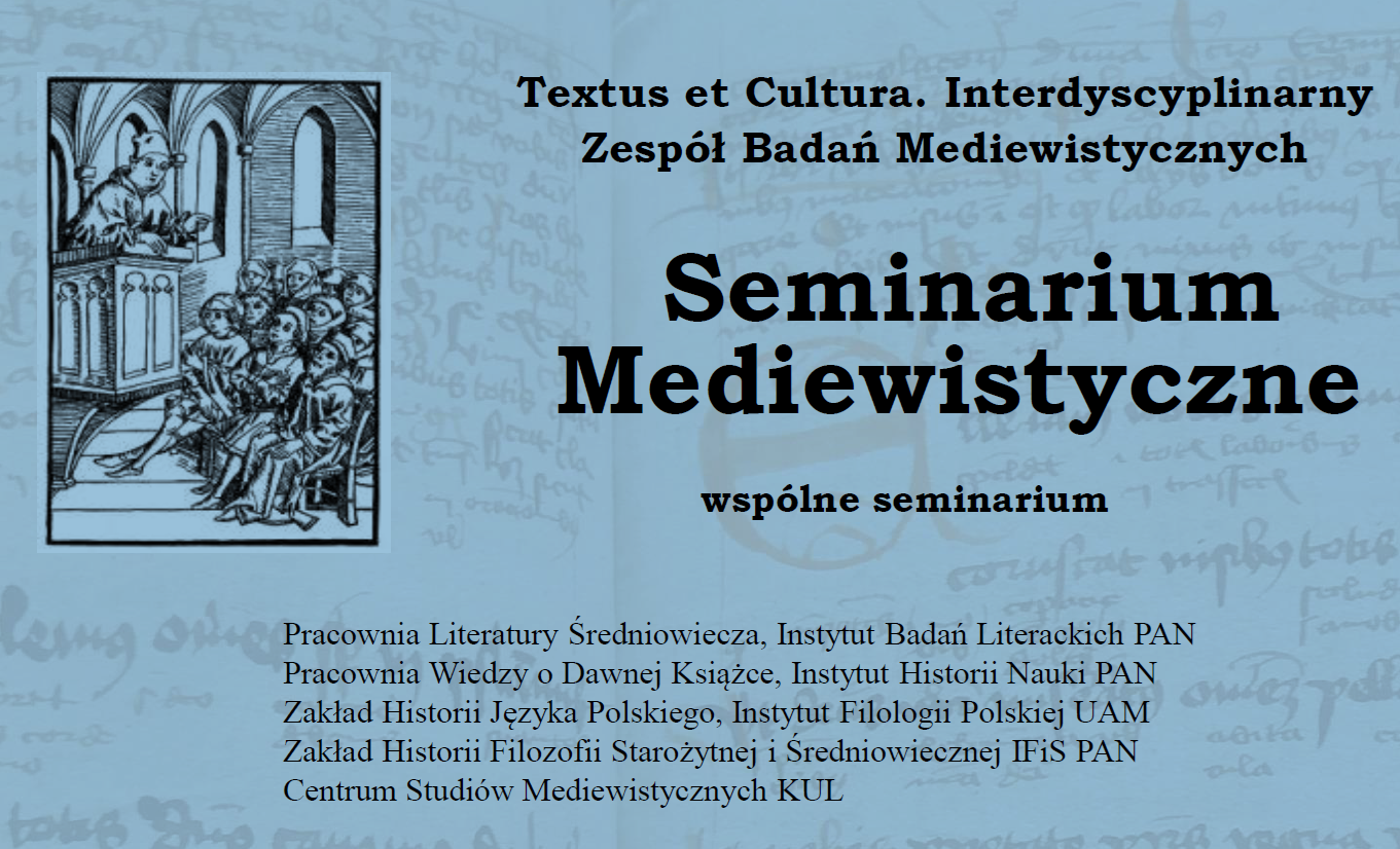 Textus et Cultura. Interdyscyplinarny Zespół Badań Mediewistycznych zaprasza na pierwsze po wakacyjnej przerwie Seminarium Mediewistyczne.