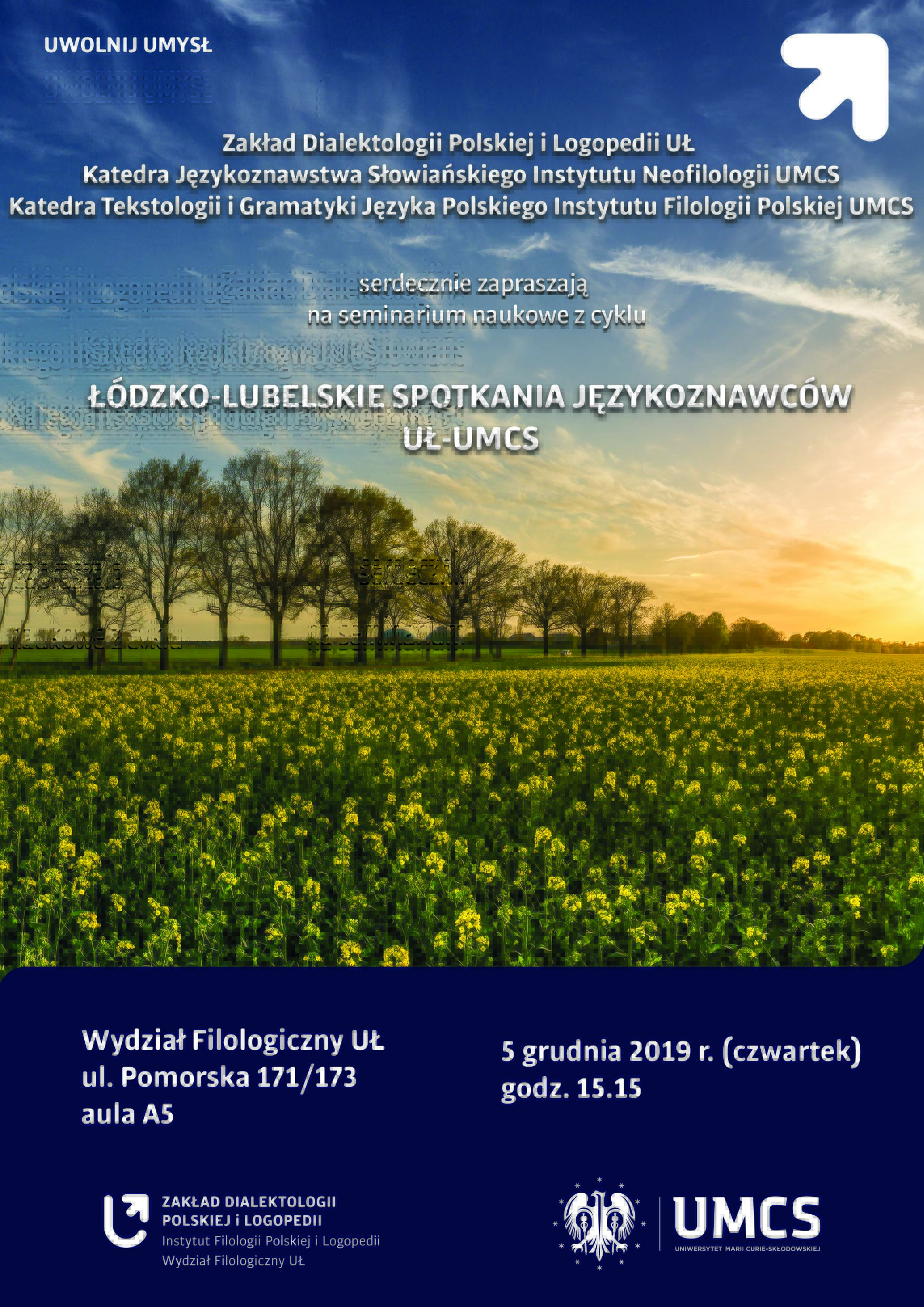 Serdecznie zapraszamy na łódzko-lubelskie spotkanie językoznawców UŁ-UMCS, które odbędzie się 5 grudnia 2019 r. na Wydziale Filologicznym UŁ o godz. 15.15 w auli A5.