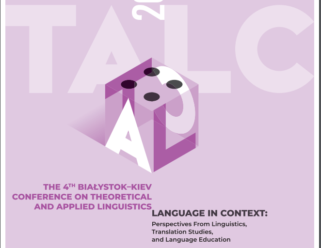 Zakład Językoznawstwa Angielskiego oraz Zakład Translatoryki i Dydaktyki Języków Obcych Wydziału Filologicznego Uniwersytetu w Białymstoku zapraszają na IV Międzynarodową Konferencję Naukową TALC 4. Konferencja odbędzie się w dniach 2-3 grudnia 2021roku w Książnicy Podlaskiej (Białystok).