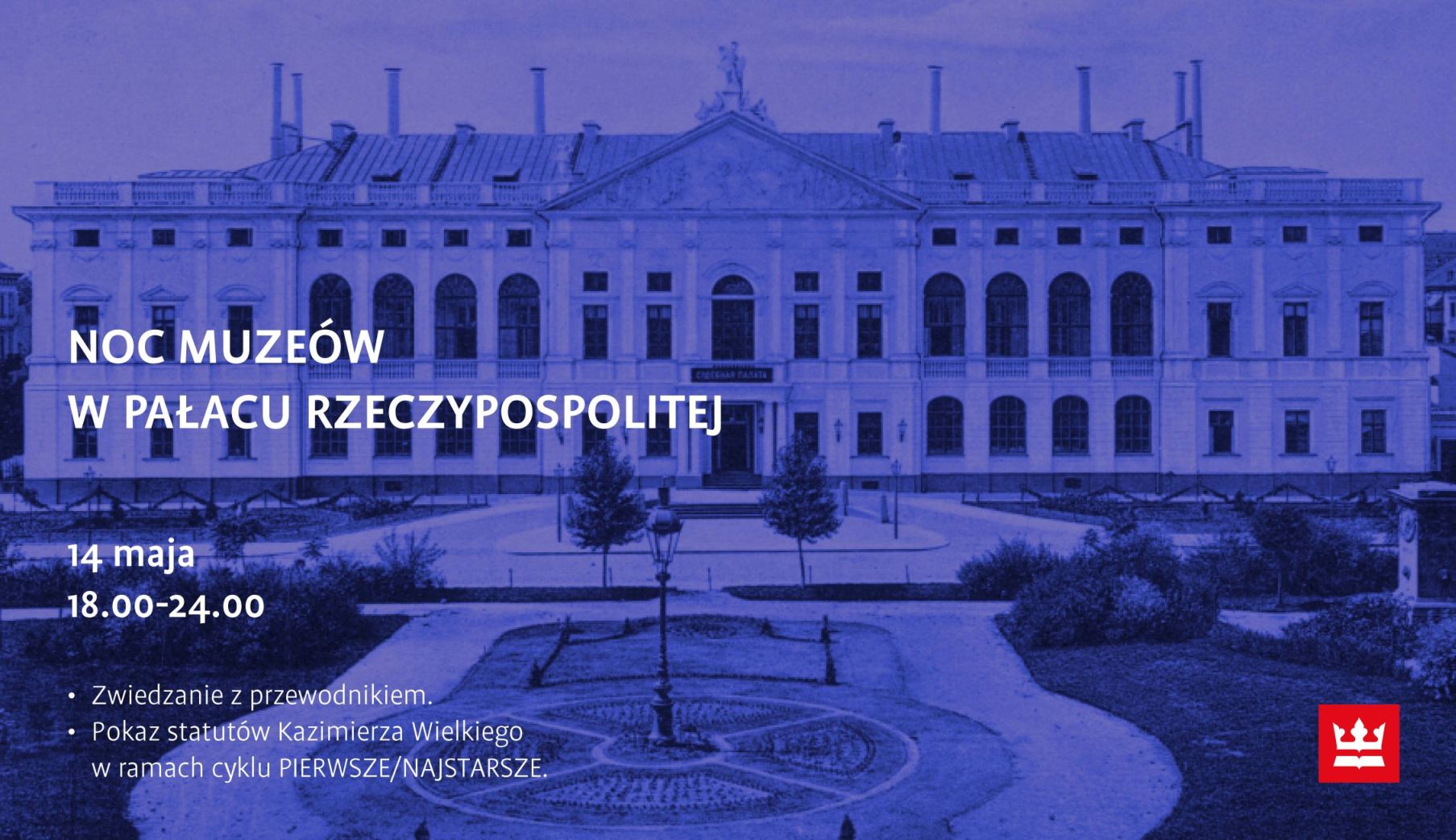 Już 14 maja, po raz pierwszy w Noc Muzeów, na co dzień zamknięty Pałac Rzeczypospolitej zostanie otwarty dla zwiedzających, a w jego wnętrzach odbędzie się pokaz Statutów Kazimierza Wielkiego – jednego z najstarszych zabytków polskiego prawodawstwa.