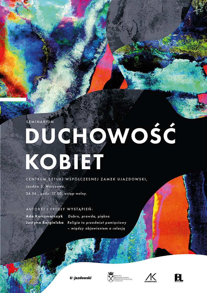 Serdecznie zapraszamy na piąte seminarium z cyklu „Duchowość kobiet” organizowane przez zespół Archiwum Kobiet IBL PAN oraz Instytut Religioznawstwa UJ. Gościniami spotkania będą pisarka Justyna Bargielska i artystka sztuk wizualnych Ada Karczmarczyk. Wystąpią one z krótkimi prezentacjami, które będą punktem wyjścia do dyskusji.