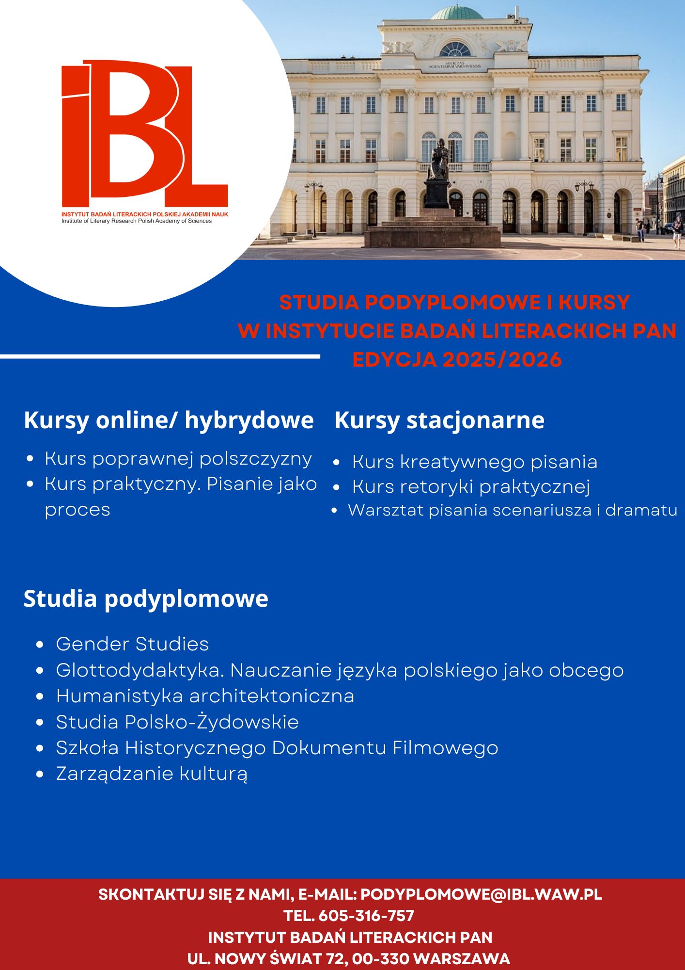 Instytut Badań Literackich PAN ogłasza nabór na Studia Podyplomowe i Kursy - edycja 2025/2026!