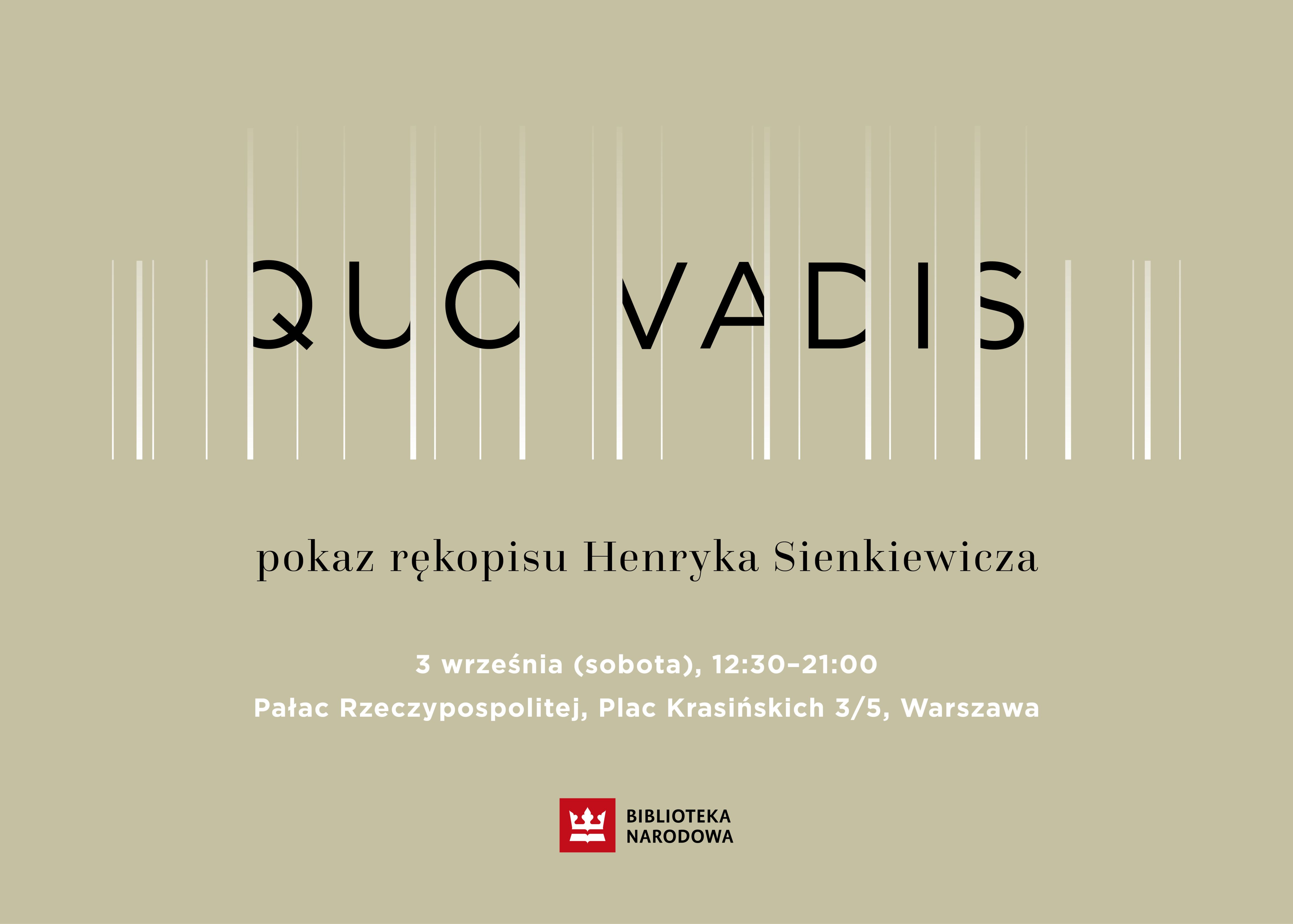 Za sprawą kolejnej edycji akcji Narodowe Czytanie już 3 września cała Polska zagłębi się w lekturze "Quo vadis" Henryka Sienkiewicza. Z tej okazji w warszawskim Pałacu Rzeczypospolitej będzie można obejrzeć rękopis powieści – bezcenny dokument opuści na jeden dzień skarbiec Biblioteki Narodowej, a pałacowe wnętrza, na co dzień zamknięte, zostaną udostępnione zwiedzającym.