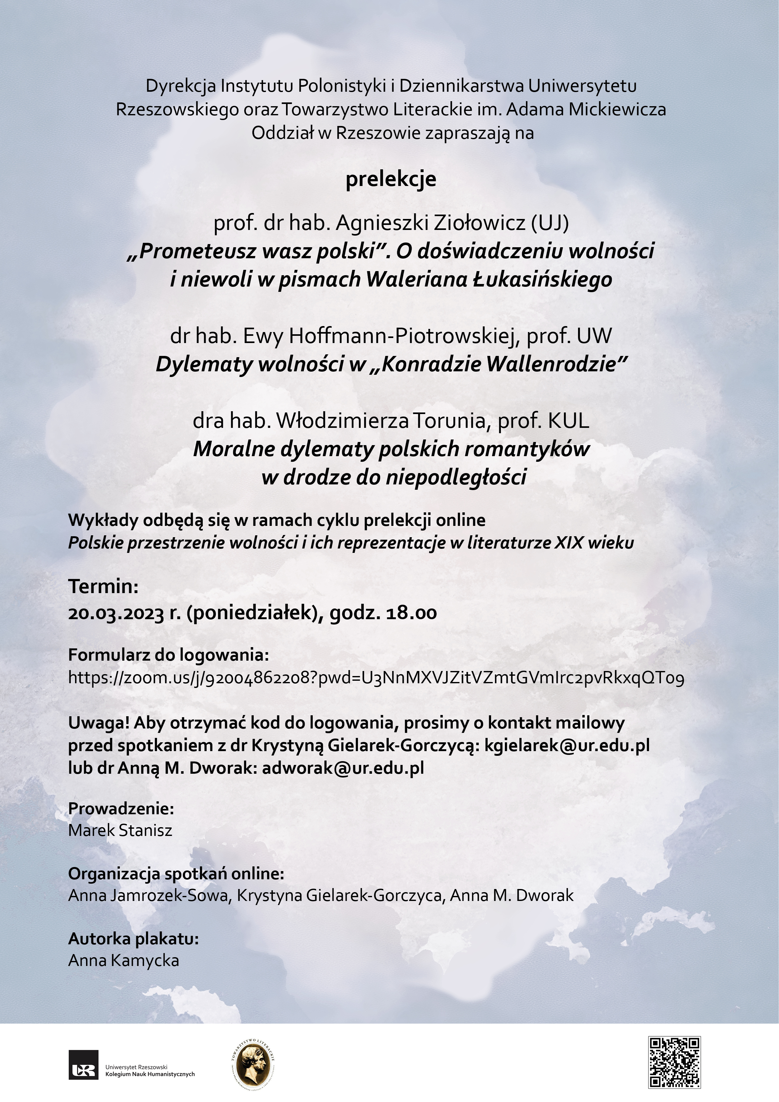 Dyrekcja Instytutu Polonistyki i Dziennikarstwa Uniwersytetu Rzeszowskiego oraz Towarzystwo Literackie im. Adama Mickiewicza Oddział w Rzeszowie zapraszają na prelekcje