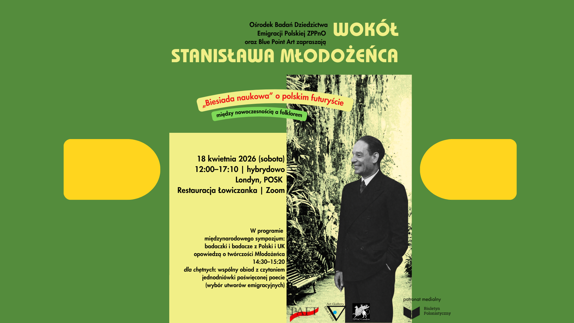 Ośrodek Badań Dziedzictwa Emigracji Polskiej przy Związku Pisarzy Polskich na Obczyźnie w Londynie oraz Blue Point Art zapraszają na międzynarodowe sympozjum naukowe, pomyślane jako „biesiada naukowa” – spotkanie łączące refleksję akademicką, wspólną lekturę i rozmowę wokół twórczości poety. Wydarzenie odbędzie się 18 kwietnia 2026 roku w formule hybrydowej – stacjonarnie w POSK-u w Londynie oraz online na platformie Zoom.