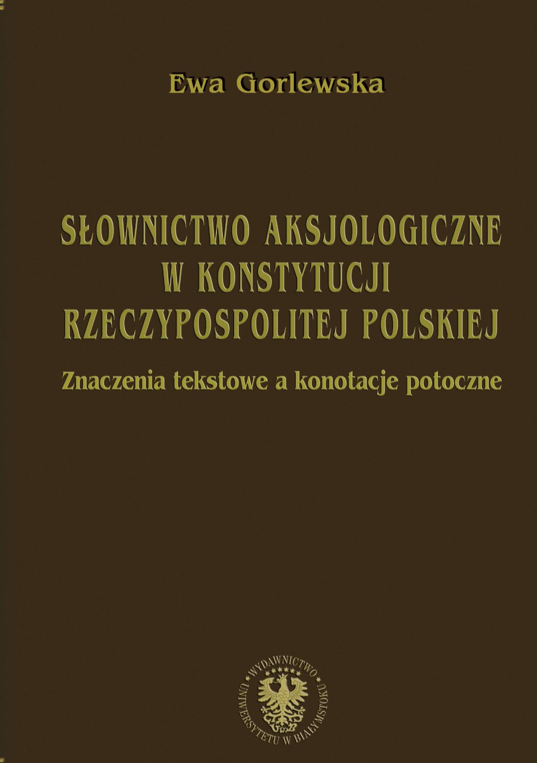 Ewa Gorlewska,SŁOWNICTWO AKSJOLOGICZNE W KONSTYTUCJI RZECZYPOSPOLITEJ POLSKIEJ Znaczenia tekstowe a konotacje potoczne