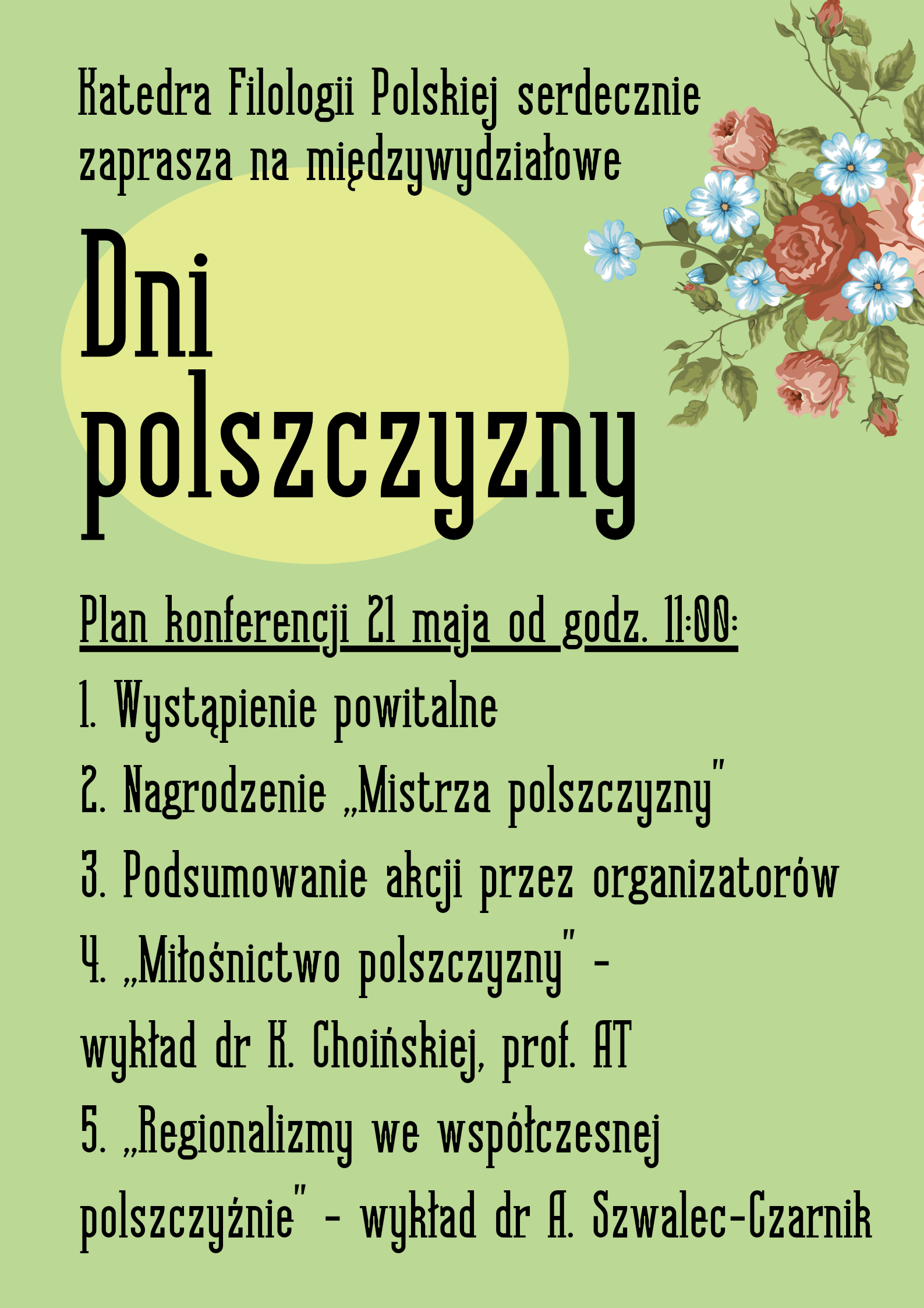 Katedra Filologii Polskiej Akademii Tarnowskiej i Towarzystwo Literackie im. Adama Mickiewicza w Tarnowie zapraszają do udziału w międzywydziałowych Dniach Polszczyzny.