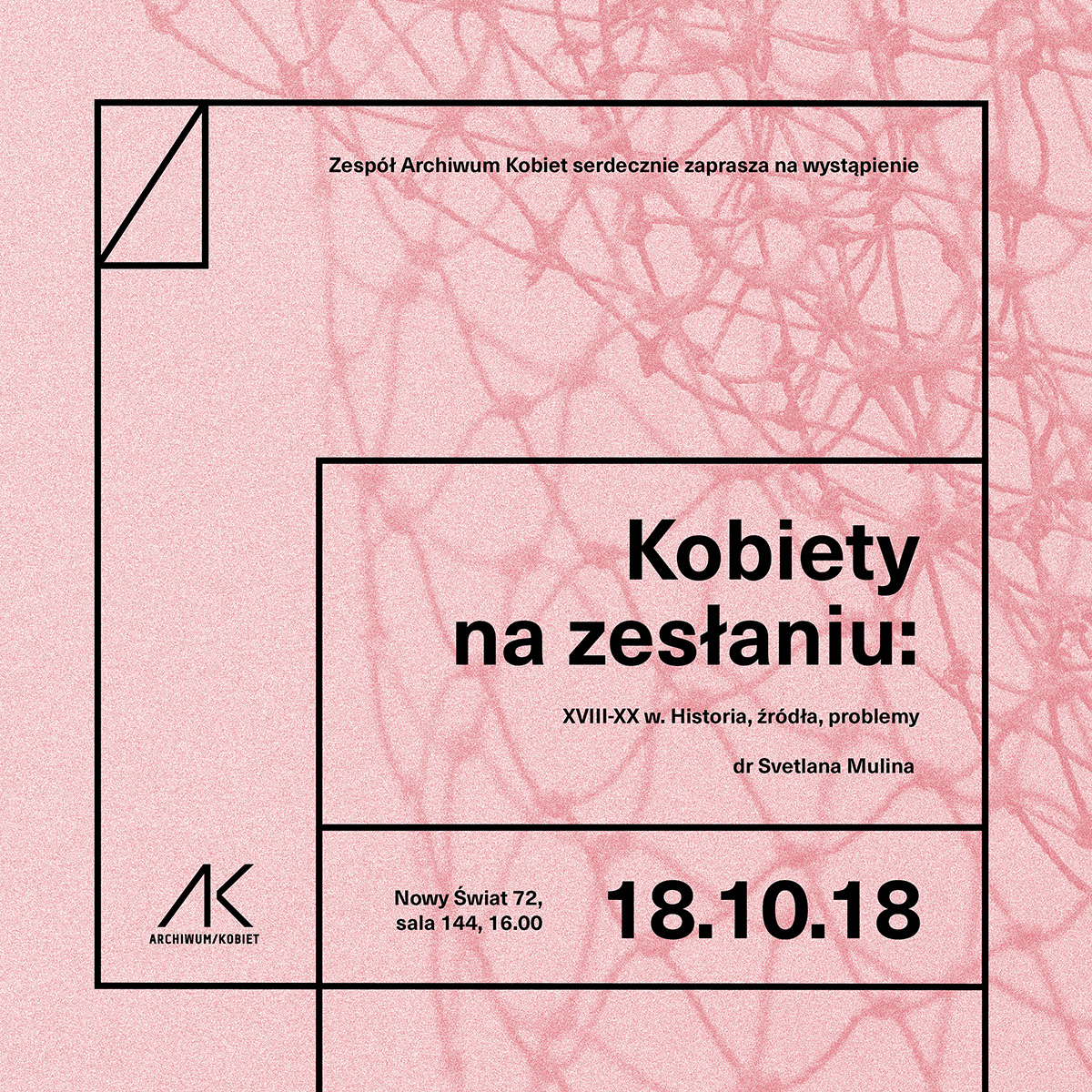 Zespółu Archiwum Kobiet IBL PAN zaprasza na wykład dr Swietlany Muliny "Kobiety na zesłaniu: XVIII-XX w.: historia, źródła, problemy", który odbędzie się w czwartek 18 października w sali 144 o godzinie 16:00.