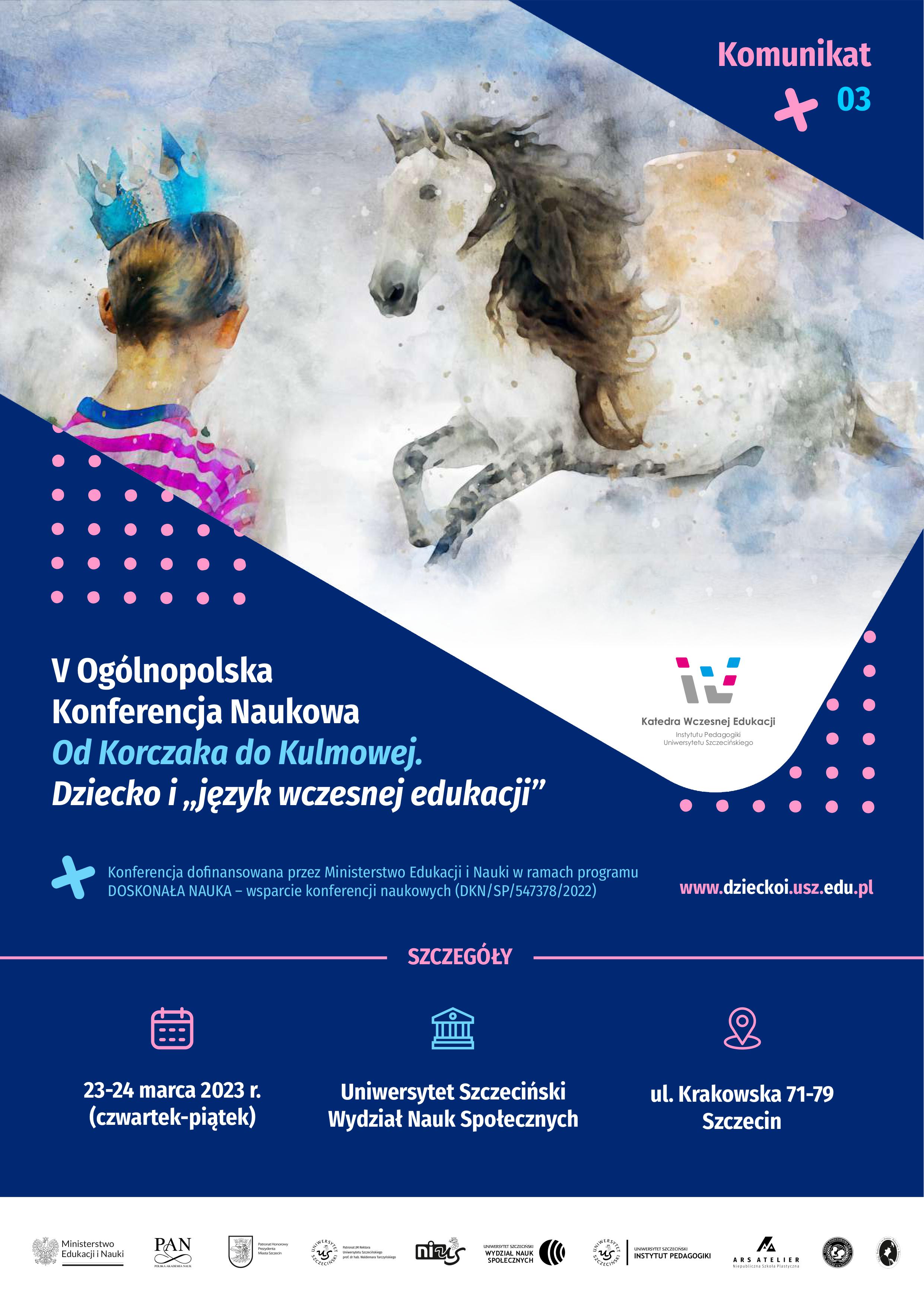 W dniach 23-24 marca 2023 r. na Wydziale Nauk Społecznych Uniwersytetu Szczecińskiego odbędzie się V Ogólnopolska Konferencja Naukowa: Od Korczaka do Kulmowej. Dziecko i „język wczesnej edukacji” organizowana przez Katedrę Wczesnej Edukacji.