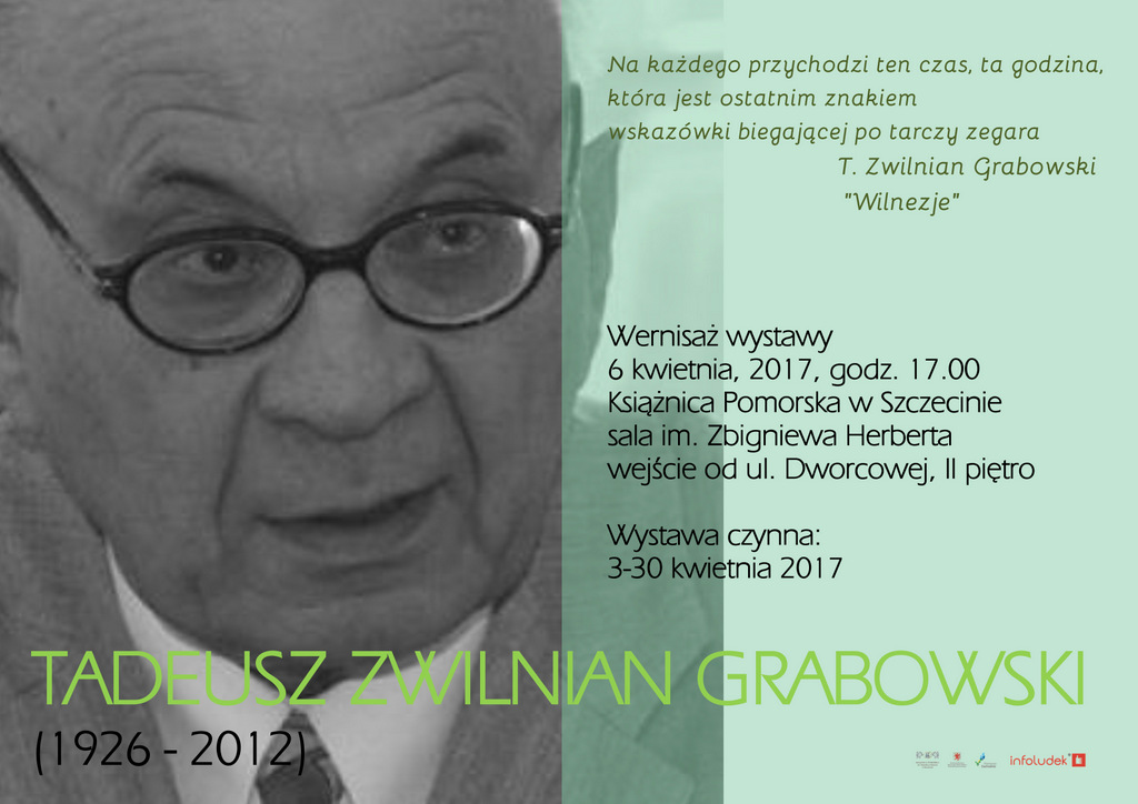 W związku z przypadająca 5 kwietnia piątą rocznicą śmierci Tadeusza Zwilniana Grabowskiego zapraszamy na otwarcie wystawy "Tadeusz Zwilnian Grabowski (1926-2012)" i spotkanie wspomnieniowe w czwartek 6 kwietnia 2017 o godz. 17.00. Wystawa eksponowana będzie w Sali im. Zbigniewa Herberta do 29 kwietnia.