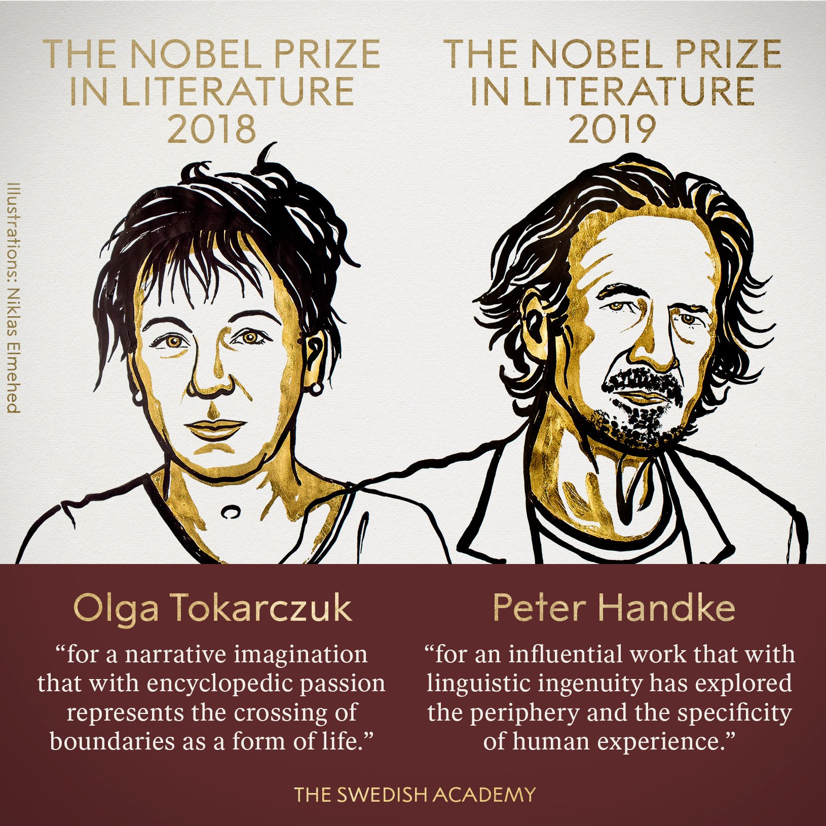 Olga Tokarczuk won the 2018 Nobel Prize in Literature. The committee praised her “narrative imagination that with encyclopaedic passion represents the crossing of boundaries as a form of life.” Austrian author Peter Handke was the winner for 2019.