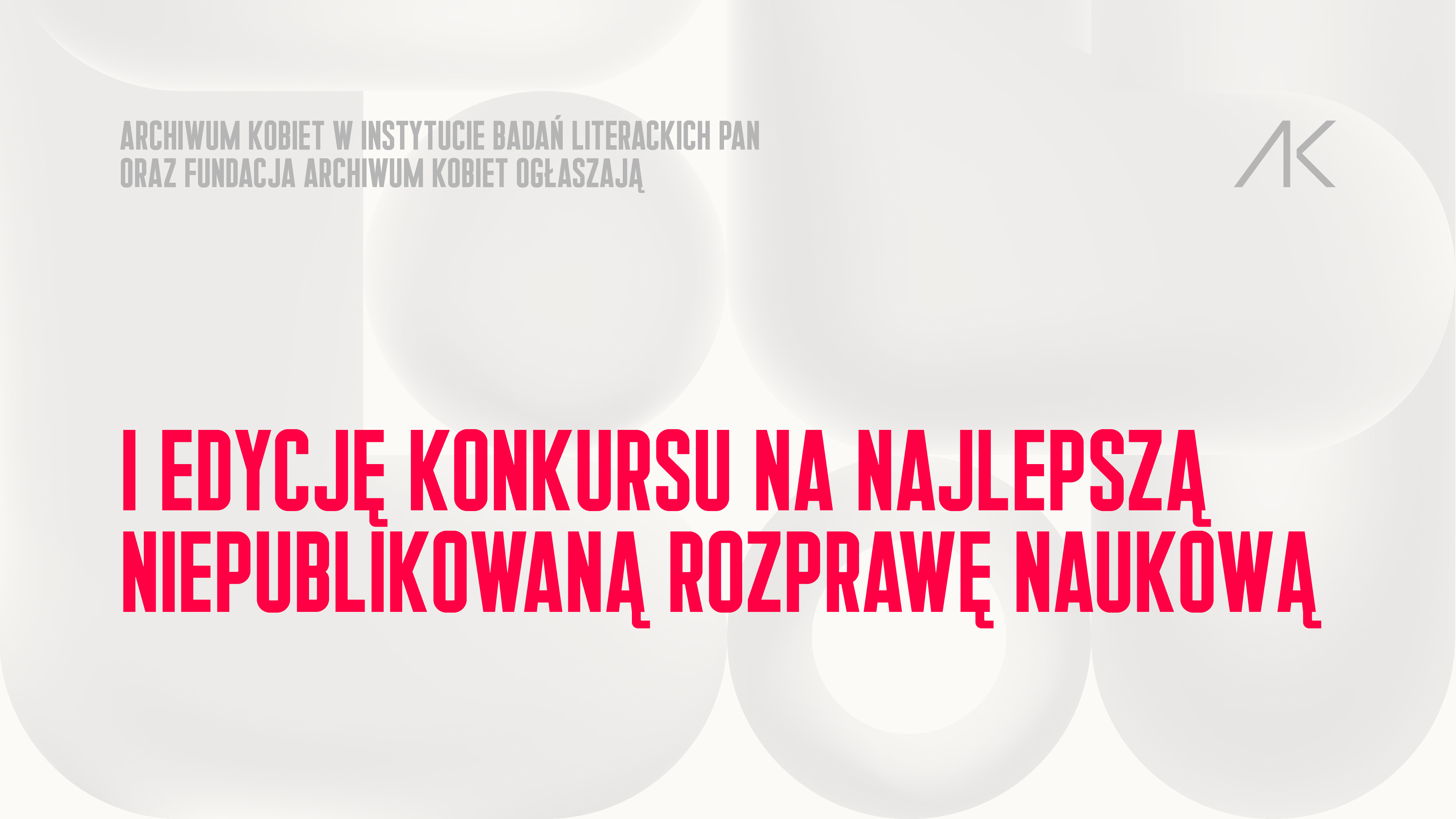 Archiwum Kobiet w Instytucie Badań Literackich PAN oraz Fundacja Archiwum Kobiet ogłaszają I edycję konkursu na najlepszą niepublikowaną rozprawę naukową.