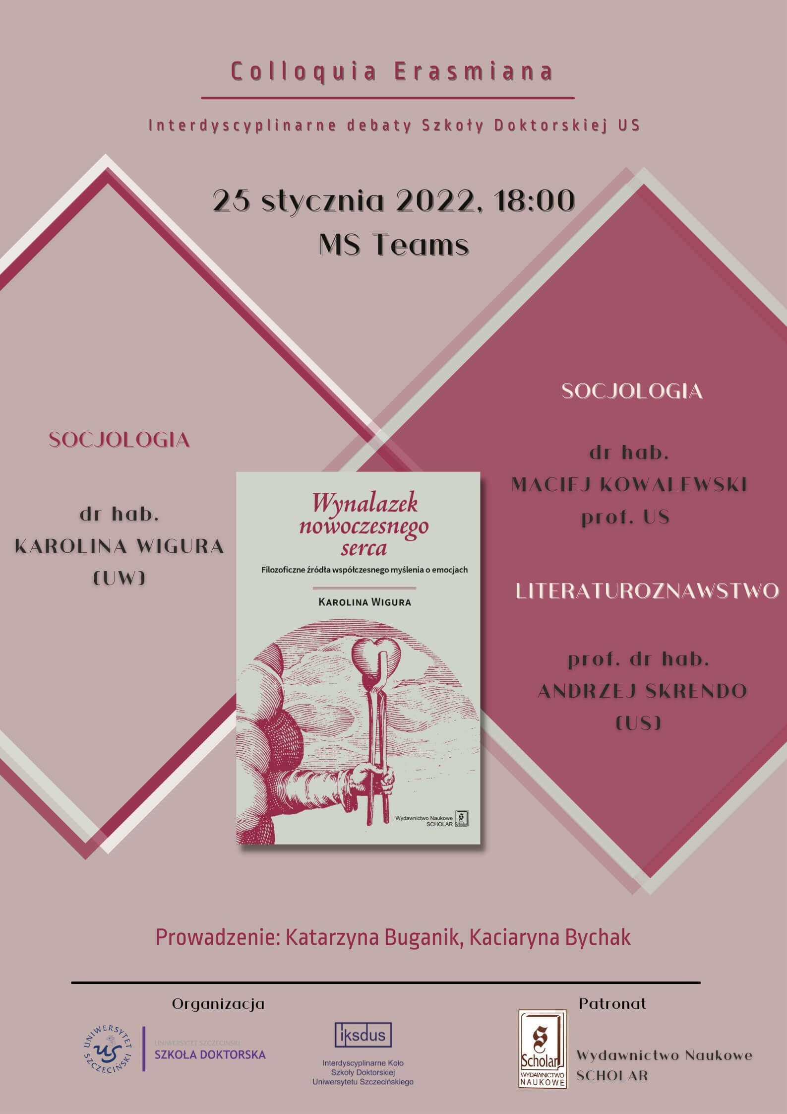 Serdecznie zapraszamy na debatę wokół książki dr hab. Karoliny Wigury „Wynalazek nowoczesnego serca. Filozoficzne źródła współczesnego myślenia o emocjach” (Wydawnictwo Naukowe SCHOLAR, 2019)