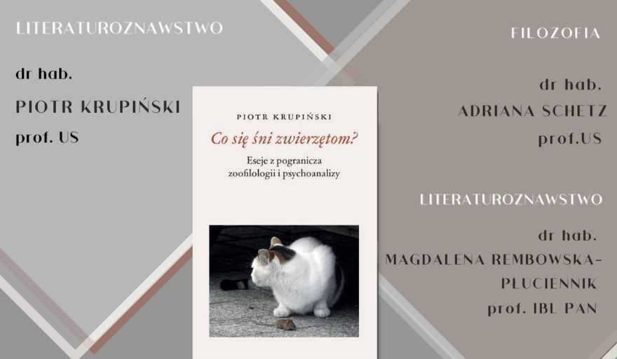 Szkoła Doktorska Uniwersytetu Szczecińskiego zaprasza na kolejne spotkanie w ramach cyklu Colloquia Erasmiana, tym razem wokół książki dra hab. Piotra Krupińskiego, prof. US – „Co się śni zwierzętom? Eseje z pogranicza zoofilologii i psychoanalizy”. Debata odbędzie się 17 maja br. o godz. 18:00, na platformie Microsoft Teams.