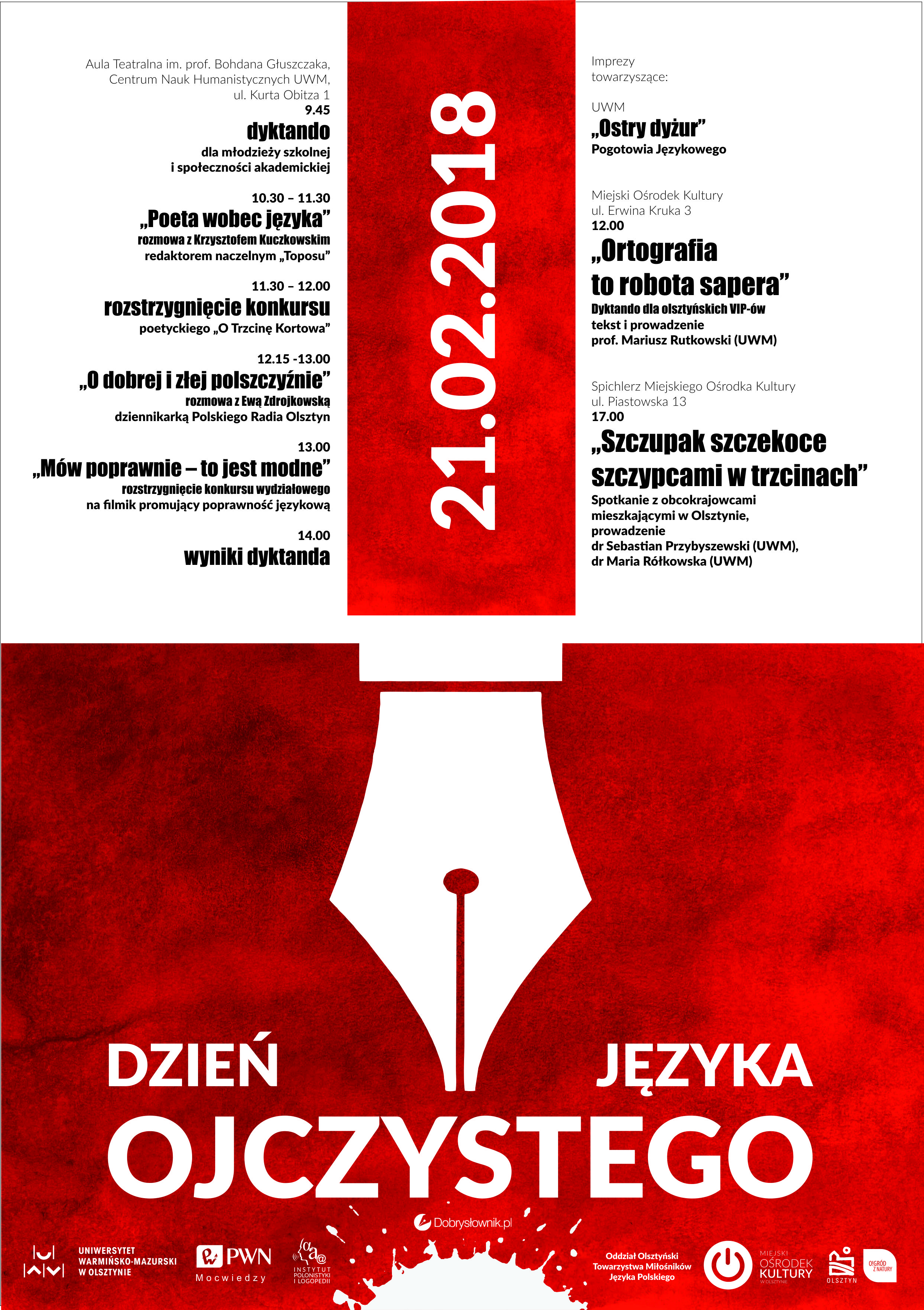 Zapraszamy na wydarzenia związane z Dniami Języka Ojczystego, obchodzonymi na Wydziale Humanistycznym Uniwersytetu Warmińsko-Mazurskiego w Olsztynie (20-21 lutego 2019).