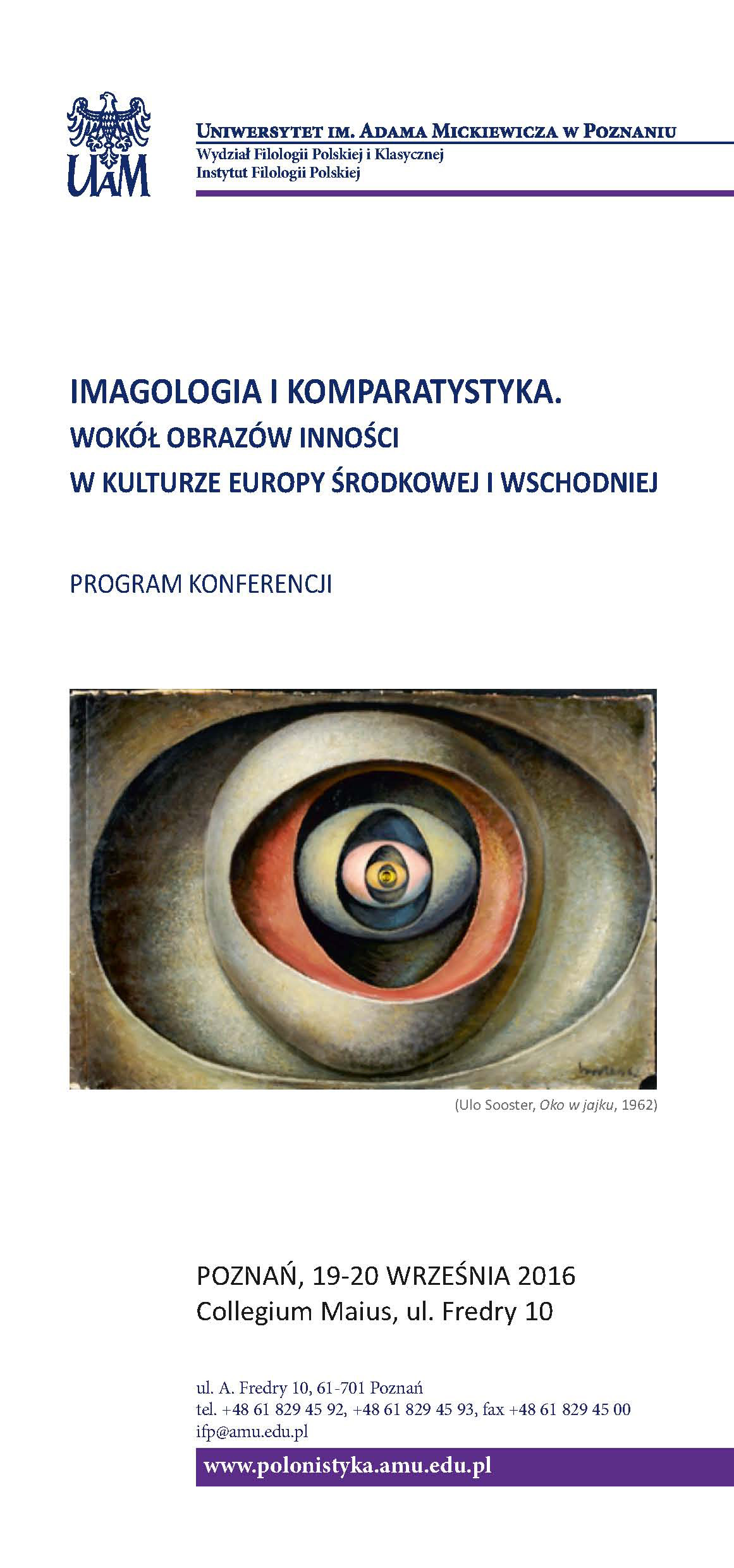 Zakład Komparatystyki Literackiej i Kulturowej IFP zaprasza na międzynarodową konferencję „Imagologia i komparatystyka. Wokół obrazów inności w kulturze Europy Środkowej i Wschodniej”, która odbędzie się w Instytucie Filologii Polskiej UAM 19 i 20 września. Program w załączniku.