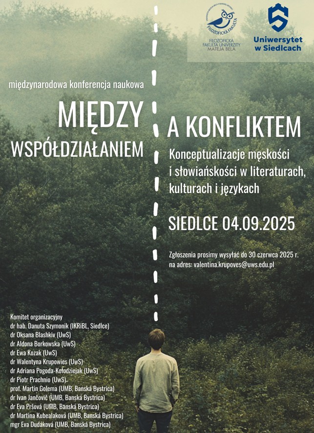 Wydział Filozoficzny Uniwersytetu Mateja Bela w Bańskiej Bystrzycy oraz Instytut Językoznawstwa i Literaturoznawstwa Uniwersytetu w Siedlcach zapraszają na międzynarodową konferencję naukową na temat ''Między współdziałaniem a konfliktem. Konceptualizacje męskości i słowiańskości w literaturach, kulturach i językach'', która odbędzie się 4 września 2025 roku w Siedlcach.
