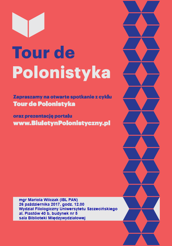 Zapraszamy na kolejne otwarte spotkanie z cyklu "Tour de Polonistyka", które odbędzie się na Wydziale Filologicznym Uniwersytetu Szczecińskiego.