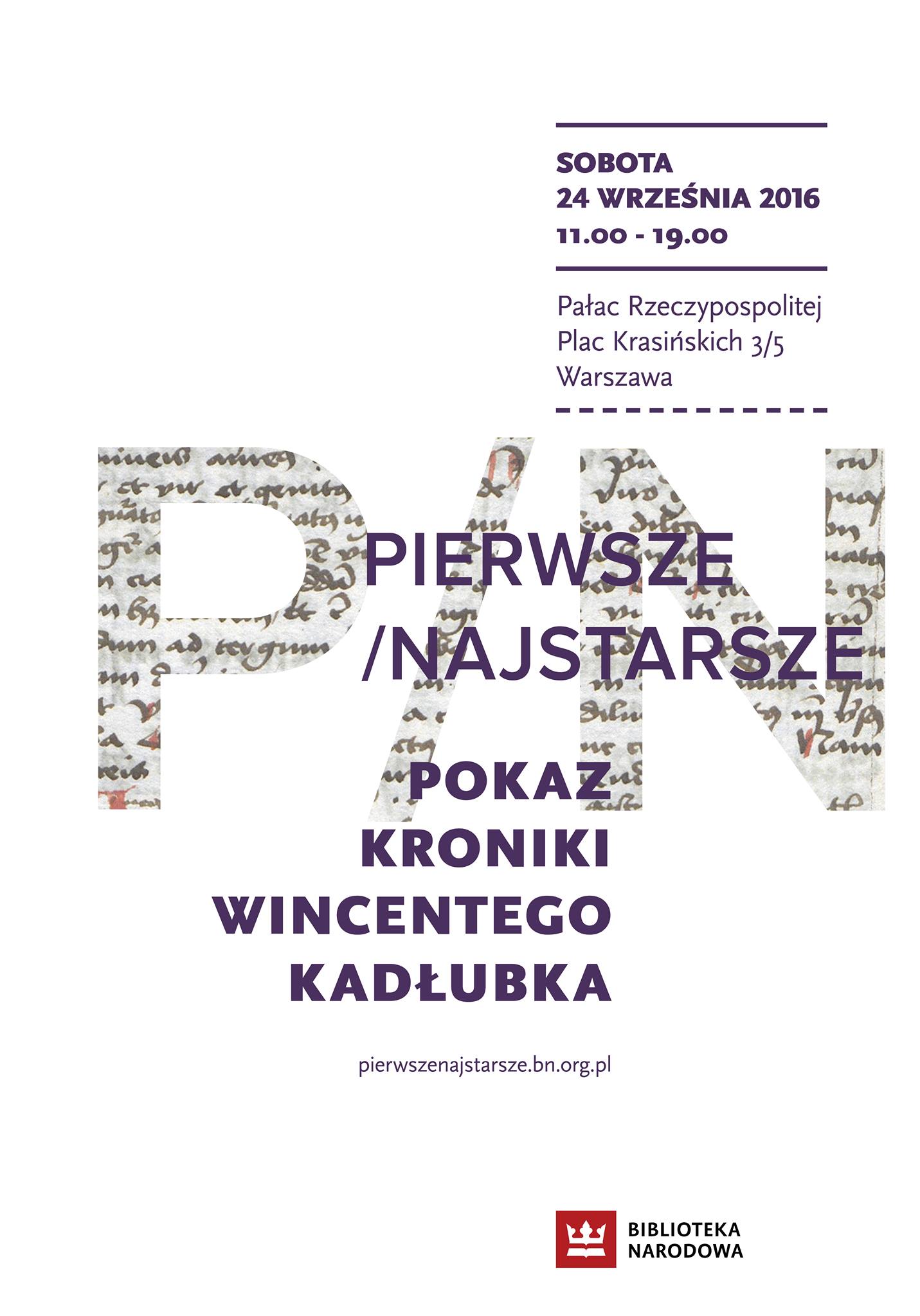 "Kronika polska" to pierwsza, najstarsza książka napisana przez Polaka. Mistrz Wincenty, zwany Kadłubkiem, stworzył na przełomie wieków XII i XIII barwną, erudycyjną opowieść o dziejach naszego kraju i przeszedł do historii jako pierwszy twórca polskiej literatury. Rękopis "Kroniki" zobaczyć będzie można w sobotę 24 września w Pałacu Rzeczypospolitej (Warszawa, pl. Krasińskich 3/5) na specjalnym, jednodniowym pokazie z cyklu Pierwsze/Najstarsze. Wydarzeniu towarzyszy wykład prof. Henryka Samsonowicza i rozmowa Włodzimierza Kalickiego z prof. Jackiem Banaszkiewiczem oraz możliwość zwiedzenia zamkniętego na co dzień Pałacu.