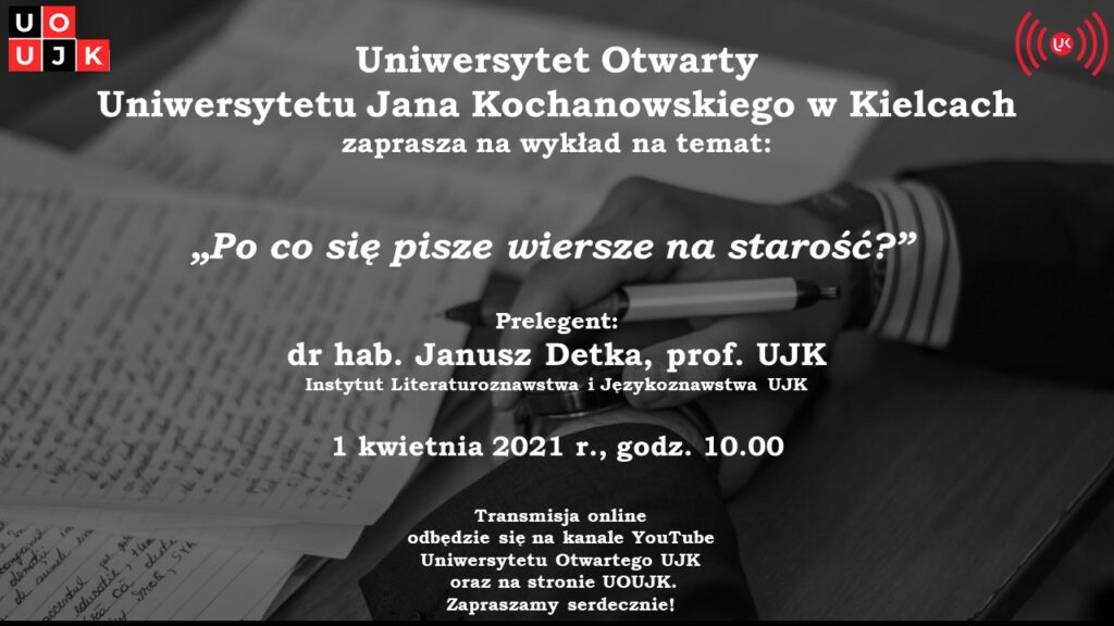 Uniwersytet Otwarty Uniwersytetu Jana Kochanowskiego w Kielcach serdecznie zaprasza na wykład dr. hab. Janusza Detki, prof. UJK