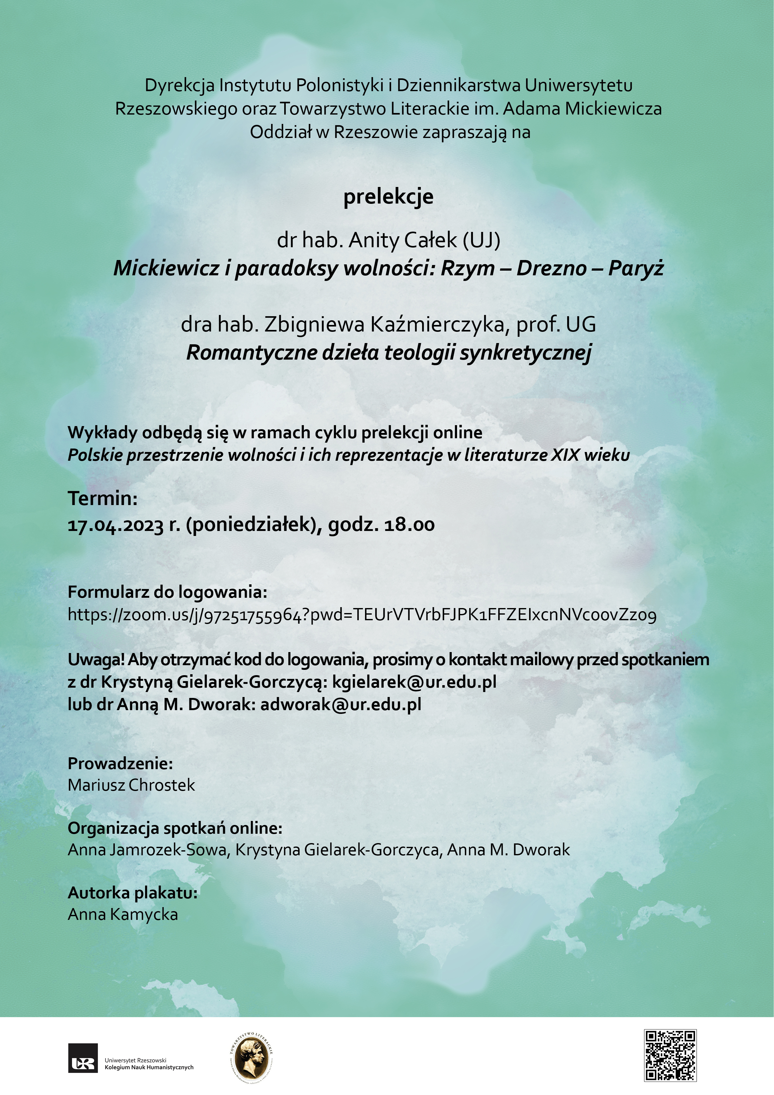 Dyrekcja Instytutu Polonistyki i Dziennikarstwa Uniwersytetu Rzeszowskiego oraz Towarzystwo Literackie im. Adama MickiewiczaOddział w Rzeszowie zapraszają na prelekcje: