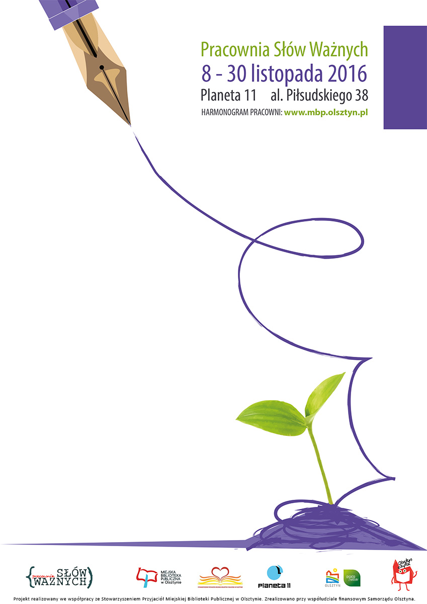 Przypominamy, że wszystkie wydarzenia związane z Pracownią Słów Ważnych odbędą się w Bibliotece Planeta 11 (przy al. Piłsudskiego 38)