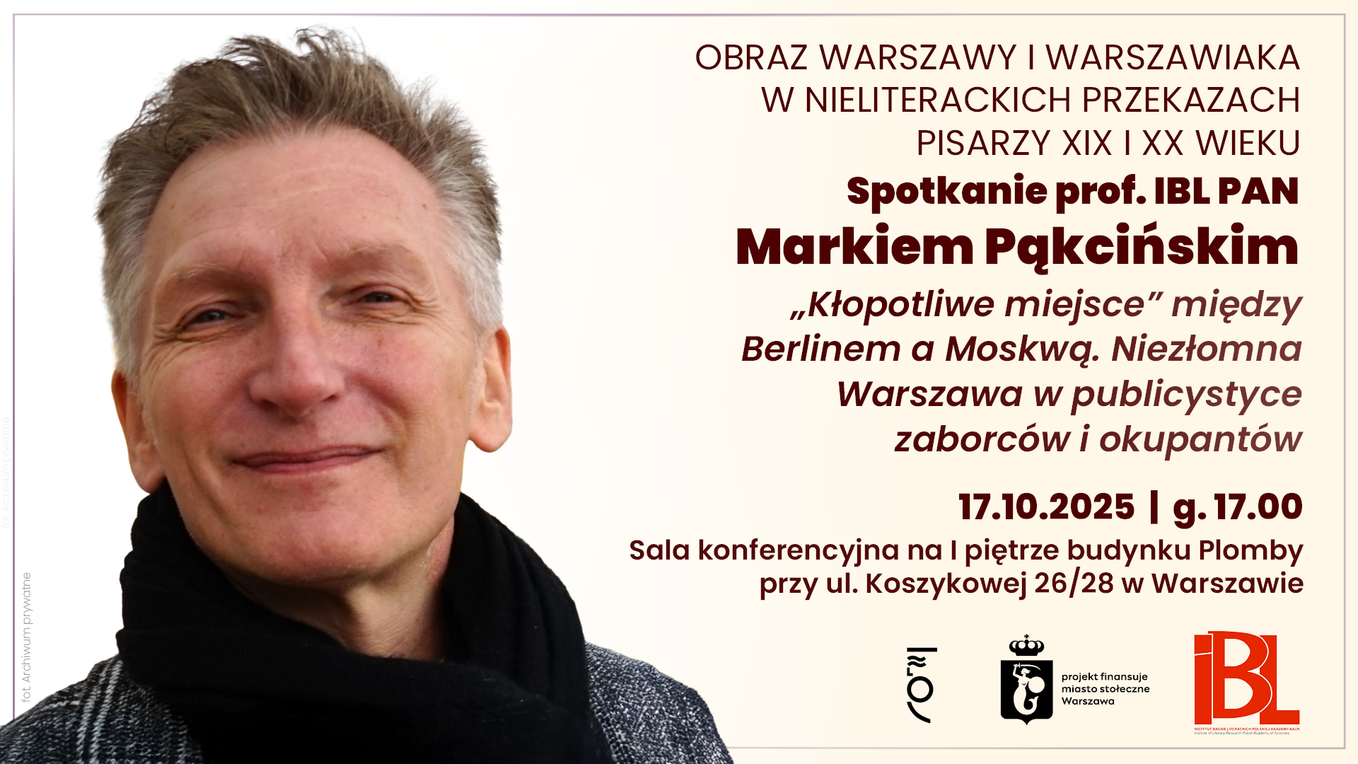 Prof. Marek Pąkciński, "Kłopotliwe miejsce" między Berlinem a Moskwą. Niezłomna Warszawa w publicystyce zaborców i okupantów / spotkanie z cyklu Obraz Warszawy i warszawiaka w nieliterackich przekazach pisarzy XIX i XX wieku