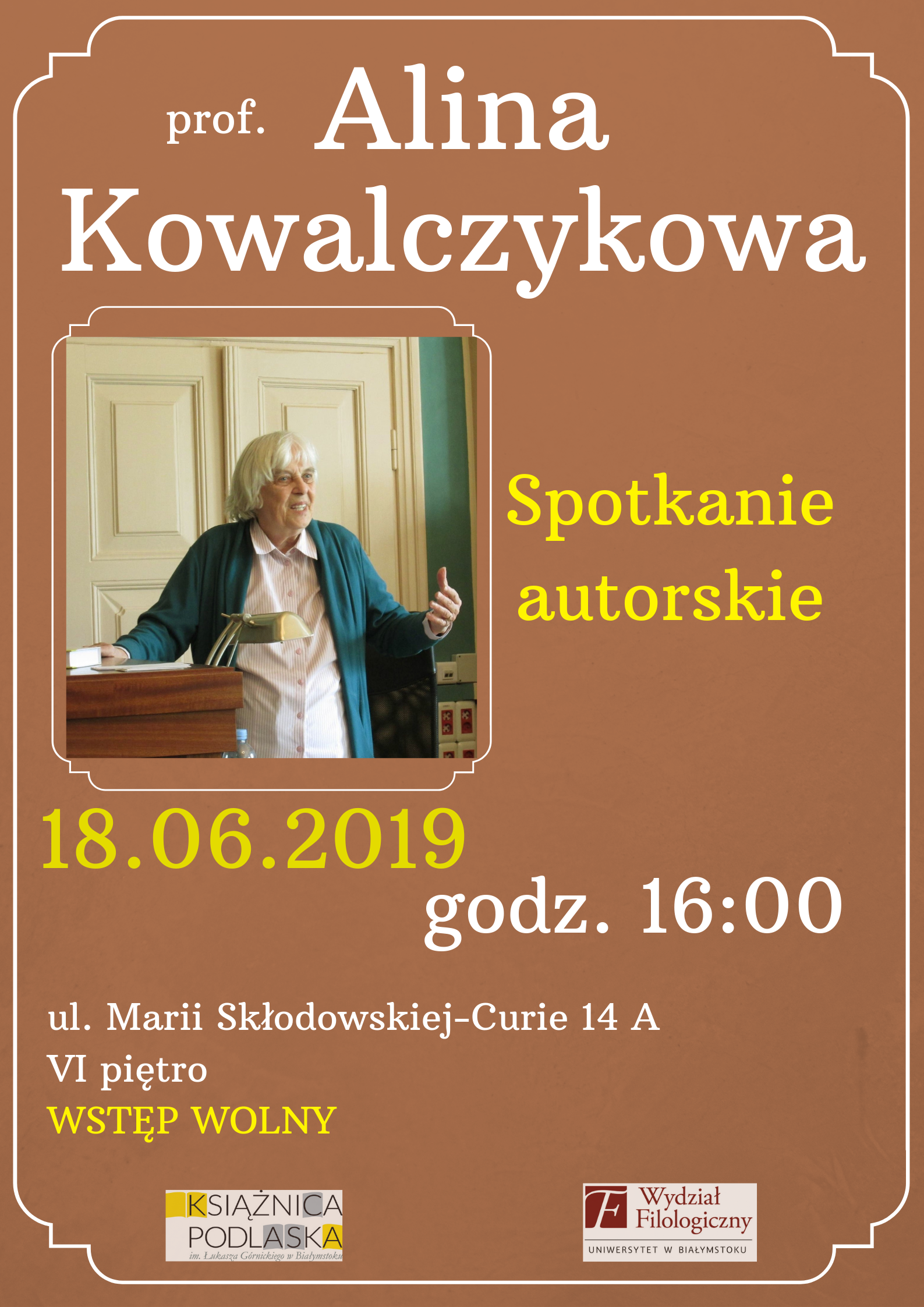 Wydział Filologiczny Uniwersytetu w Białymstoku oraz Książnica Podlaska serdecznie zapraszają na spotkanie z Panią Prof. Aliną Kowalczykową.