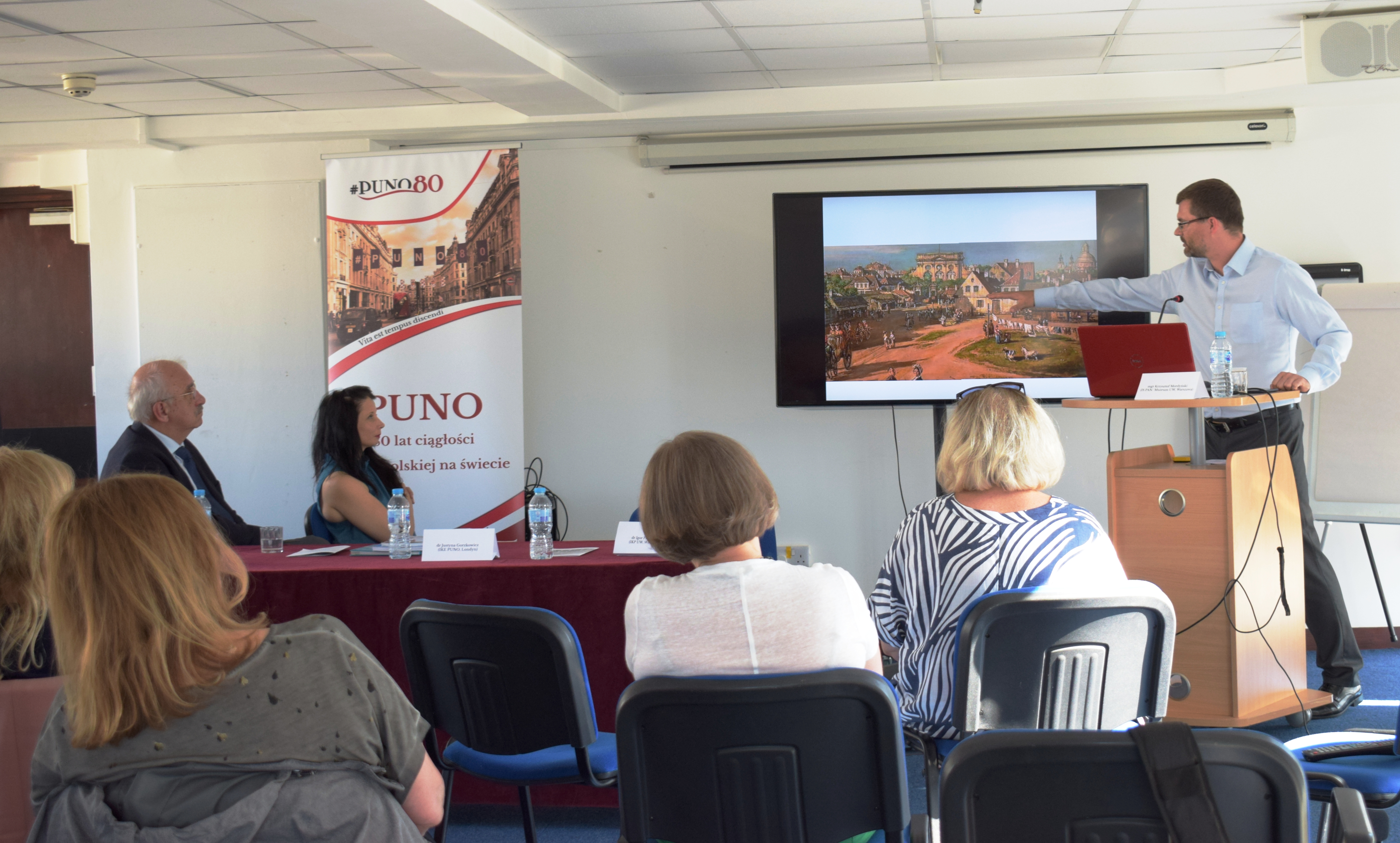 Dr Justyna Gorzkowicz z PUNO, badaczka m.in. wariantywności kultury polskiej oraz ojczystego języka na emigracji, podjęła temat szeroko pojętej geohumanistyki w odniesieniu do literatury i sztuki. Prelegentka poruszyła wątek tożsamości miejsc i sposobów jej realizowania się w sytuacji formowania się środowisk naukowych i artystycznych na obczyźnie. Wskazała na paralelę pomiędzy XIX-wiecznym Warszawskim Towarzystwem Przyjaciół Nauk a środowiskiem polskiej emigracji, działającej w Londynie od czasów po drugiej wojnie do chwili obecnej. Zaznaczyła, że w przypadku WTPN kulturotwórczą rolę pełnił Pałac Staszica, zaś PUNO, jako formacja naukowa, utrzymuje ciągłość pomimo wieloletniego braku stałej siedziby. Obecnie miejscem jej działalności jest budynek Polskiego Ośrodka Społeczno-Kulturalnego, w którym odbyło się sympozjum. Autorka wystąpienia zaakcentowała geopoetyckie spojrzenie na miejsca tożsamościowe w sytuacji emigracyjnej.