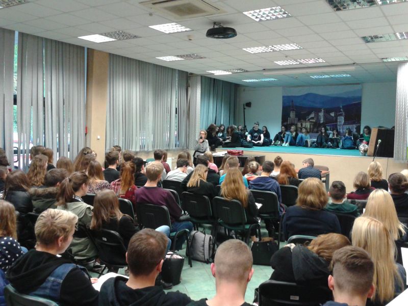 W czwartek 20 października w auli Książnicy Beskidzkiej w Bielsku-Białej ponad stu uczniów klas o profilu humanistycznym z trzech bielskich liceów im. M. Kopernika, im. A. Asnyka i im. S. Żeromskiego wysłuchało wykładu prof. dr hab. Anny Węgrzyniak „O ironii jako kategorii estetycznej – na przykładzie wybranych wierszy”.