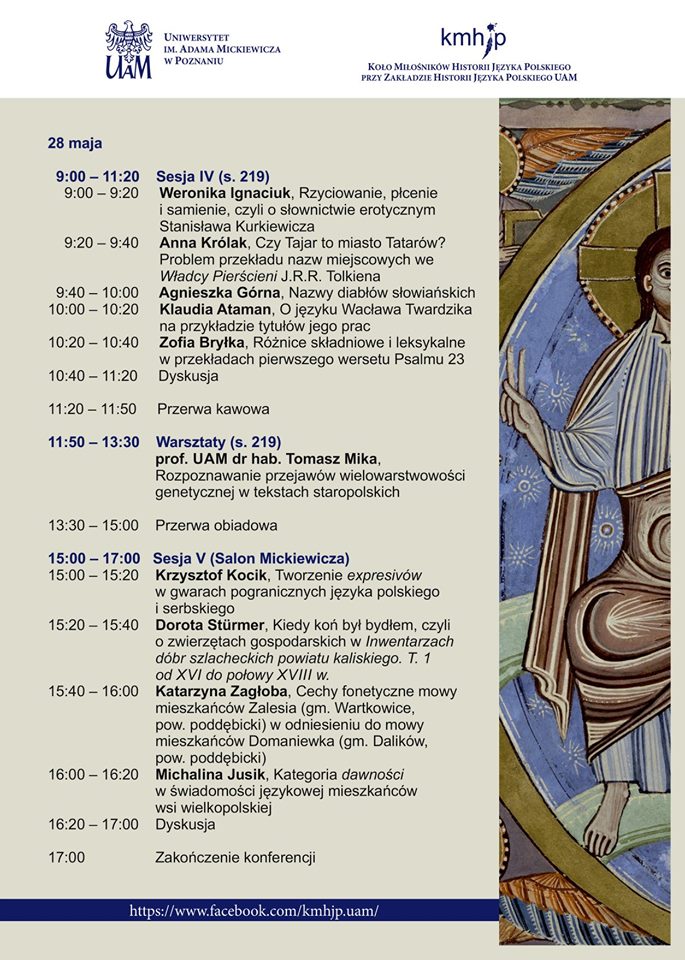 Koło Miłośników Historii Języka Polskiego działające przy Zakładzie Historii Języka Polskiego UAM ma przyjemność zaprosić na VII Ogólnopolską Konferencję Historycznojęzykową z okazji 80. rocznicy urodzin prof. Wacława Twardzika. Konferencja będzie miała miejsce w dniach 11-12 maja 2017 r. w Poznaniu, w budynku Collegium Maius przy ul. Fredry 10.