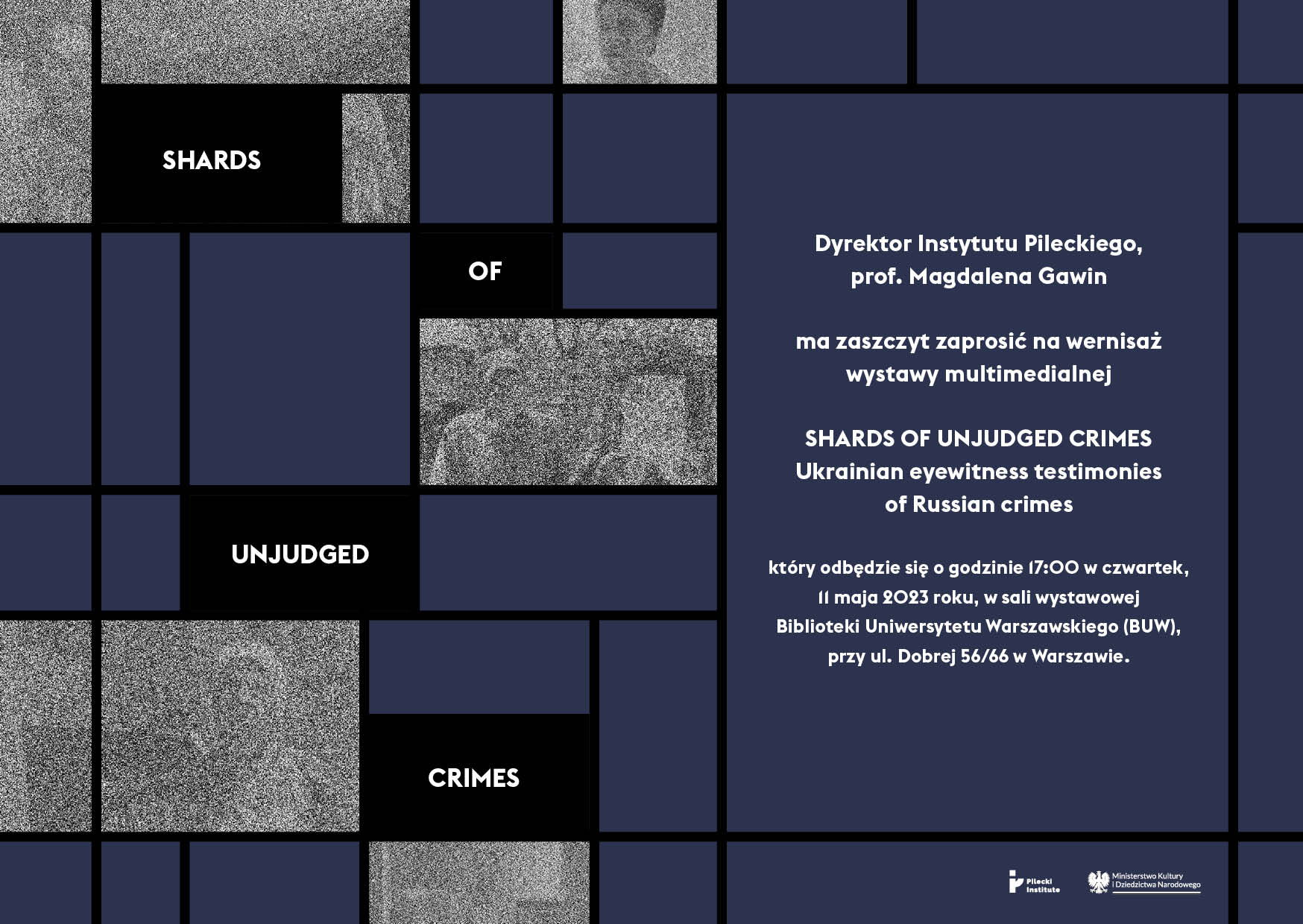 Instytut Pileckiego zaprasza na wernisaż multimedialnej wystawy „SHARDS OF UNJUDGED CRIMES” – Ukrainian eyewitness testimonies of Russian crimes – w czwartek 11 maja o godz. 17.00, do sali wystawowej Biblioteki Uniwersytetu Warszawskiego (BUW) przy ul. Dobrej 56/66.