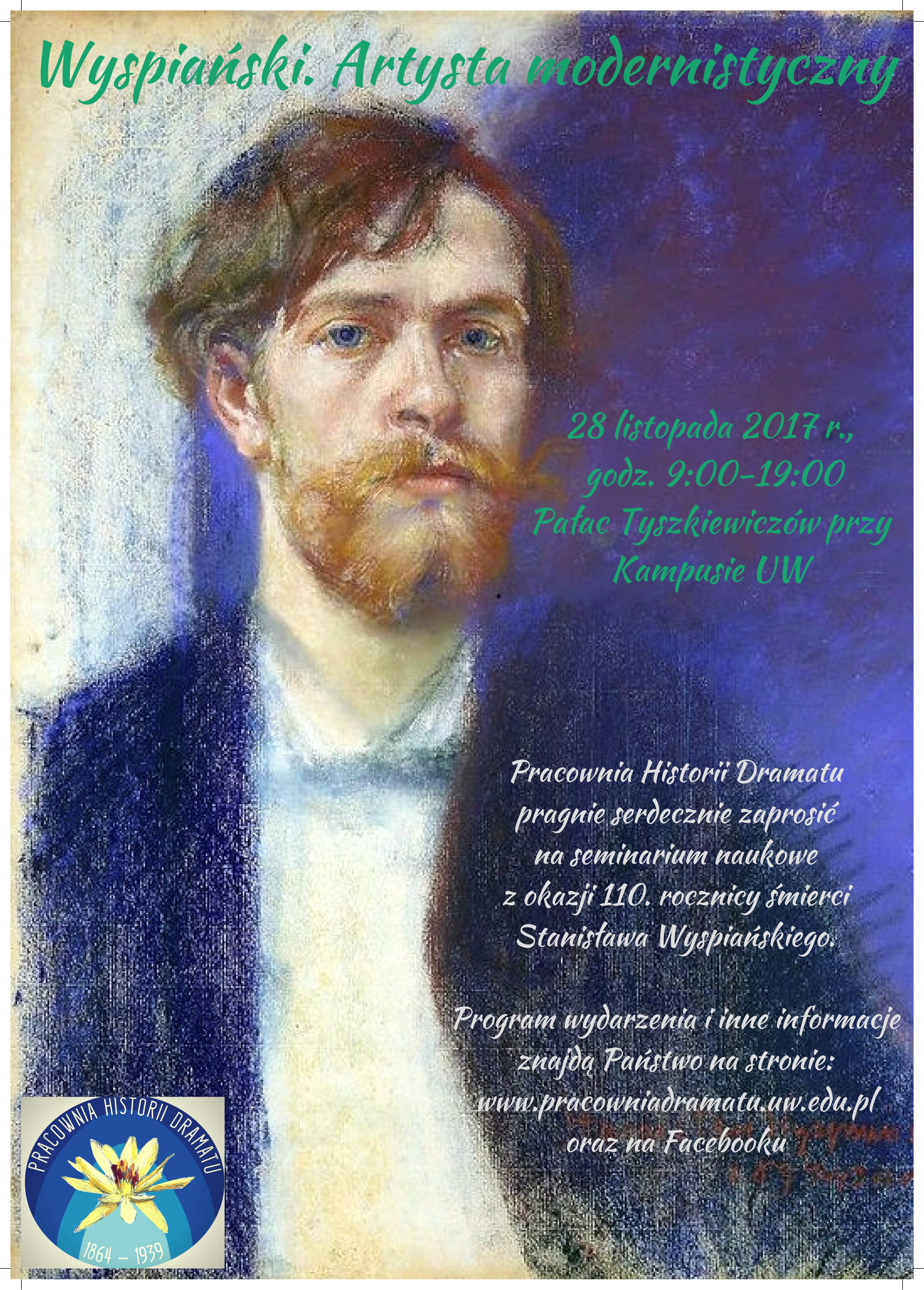 Pracownia Historia Dramatu 1864-1939 Uniwersytetu Warszawskiego zaprasza na seminarium poświęcone Stanisławowi Wyspiańskiemu. Wydarzenie odbędzie się w stulecie śmierci pisarza.