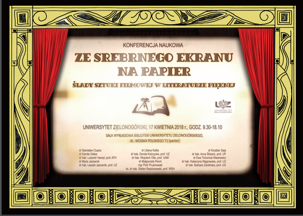 Zakład Teorii Literatury i Krytyki Literackiej oraz Instytut Filologii Polskiej UZ zapraszają do udziału w konferencji naukowej zatytułowanej Ze srebrnego ekranu na papier. Ślady sztuki filmowej w literaturze pięknej.