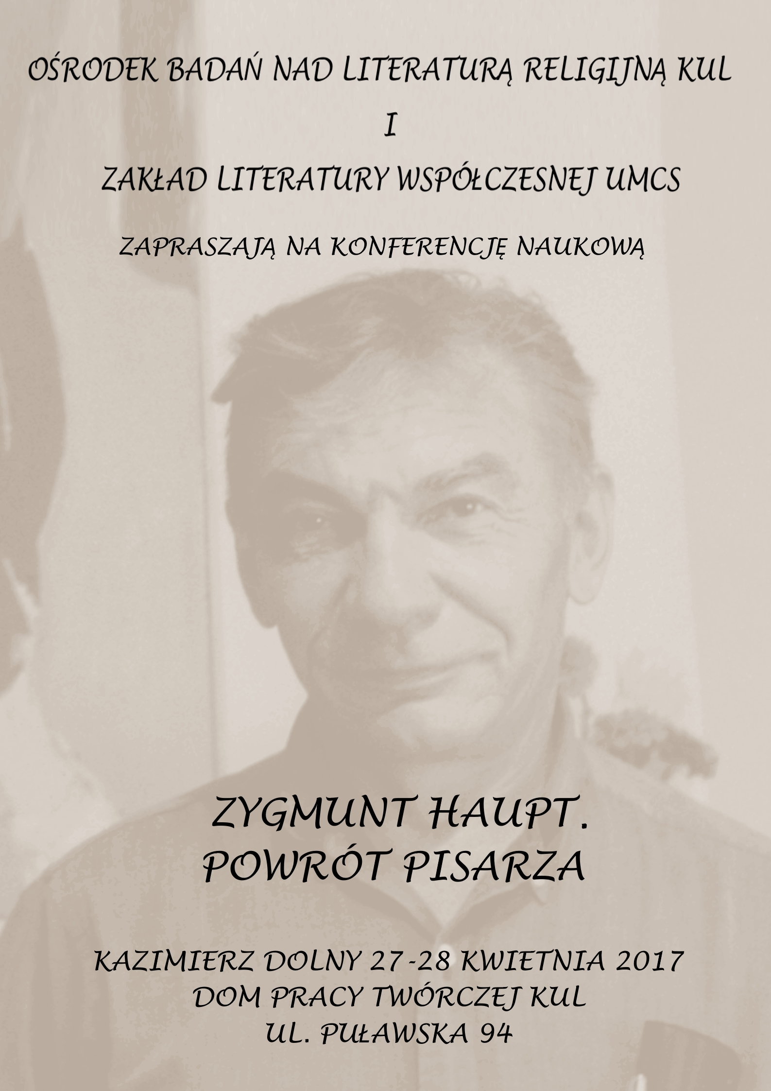 Ośrodek Badań nad Literaturą Religijną KUL oraz Zakład Literatury Współczesnej UMCS zapraszają na konferencję naukową „Zygmunt Haupt. Powrót pisarza”, która odbędzie się 27-28 kwietnia 2017 r. w Kazimierzu Dolnym (Dom Pracy Twórczej KUL, ul. Puławska 94).