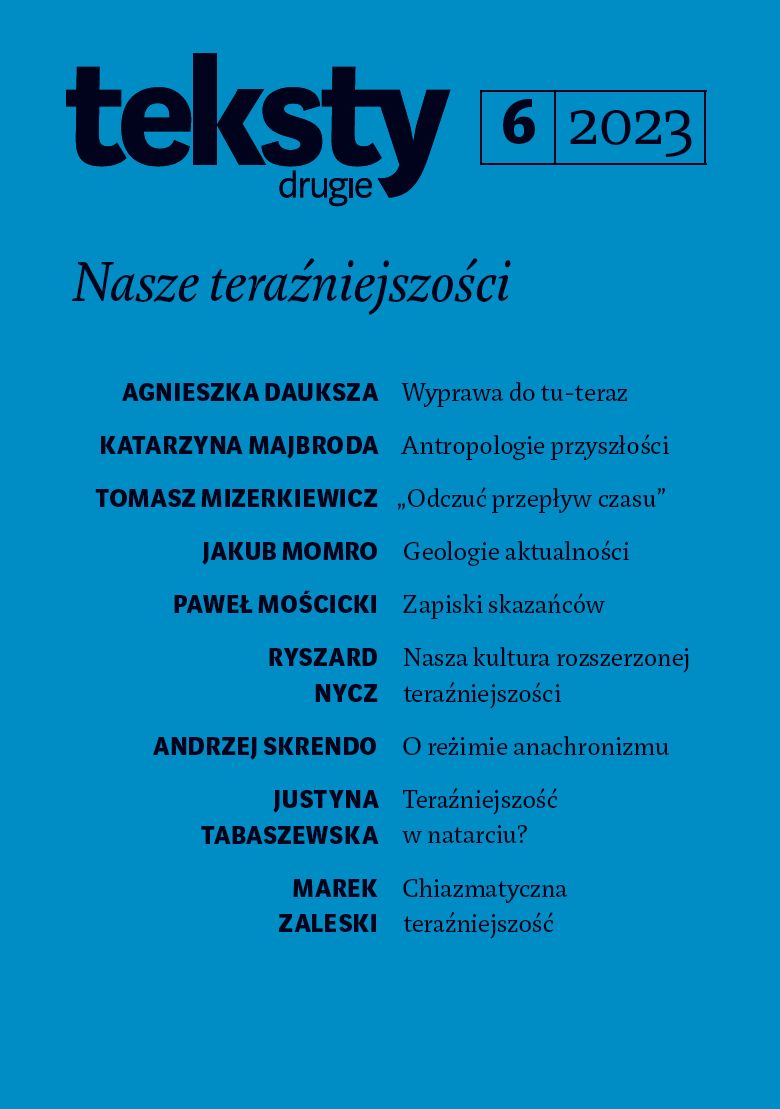 "Żyjemy pod presją radykalnej zmiany naszego doświadczenia czasu. To znaczy tego, w jakich kategoriach myślimy o przyszłości – godzin, dni, miesięcy czy lat, a może realizacji jeszcze bardziej odległych życiowych celów? O teraźniejszości – jako chwili, polu, a może środowisku, w którym żyjemy? O przeszłości – jako spełnionej i niezmiennej rzeczywistości? Jako oparciu czy przekleństwie? Jako otwartej możliwości nowych jej wersji? Mam przekonanie, że jest to zmiana tyleż oczywista, co nieuświadamiana. Oczywista, bo przez wielu refleksyjnie doświadczana, lecz przez większość wypierana czy przesłaniana niewczesnymi już wyobrażeniami wziętymi głównie ze słownika nowoczesności."