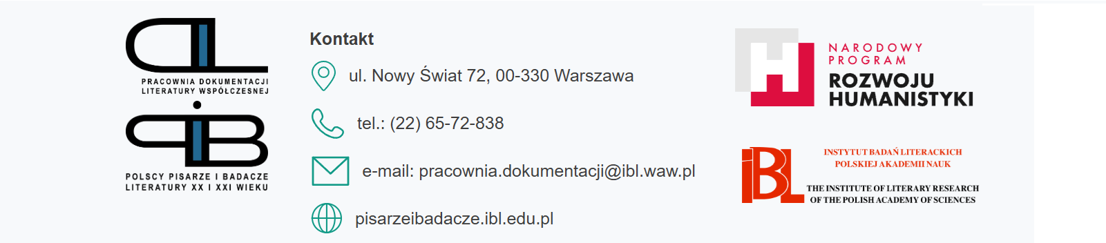 Baza Polscy pisarze i badacze literatury XX i XXI wieku stanowi kumulację dorobku Instytutu Badań Literackich w zakresie słowników biobibliograficznych tego okresu, a także badań metodologicznych w tym obszarze, rozwijanych od lat pięćdziesiątych ubiegłego wieku w Pracowni Dokumentacji Literatury Współczesnej. zob. więcej