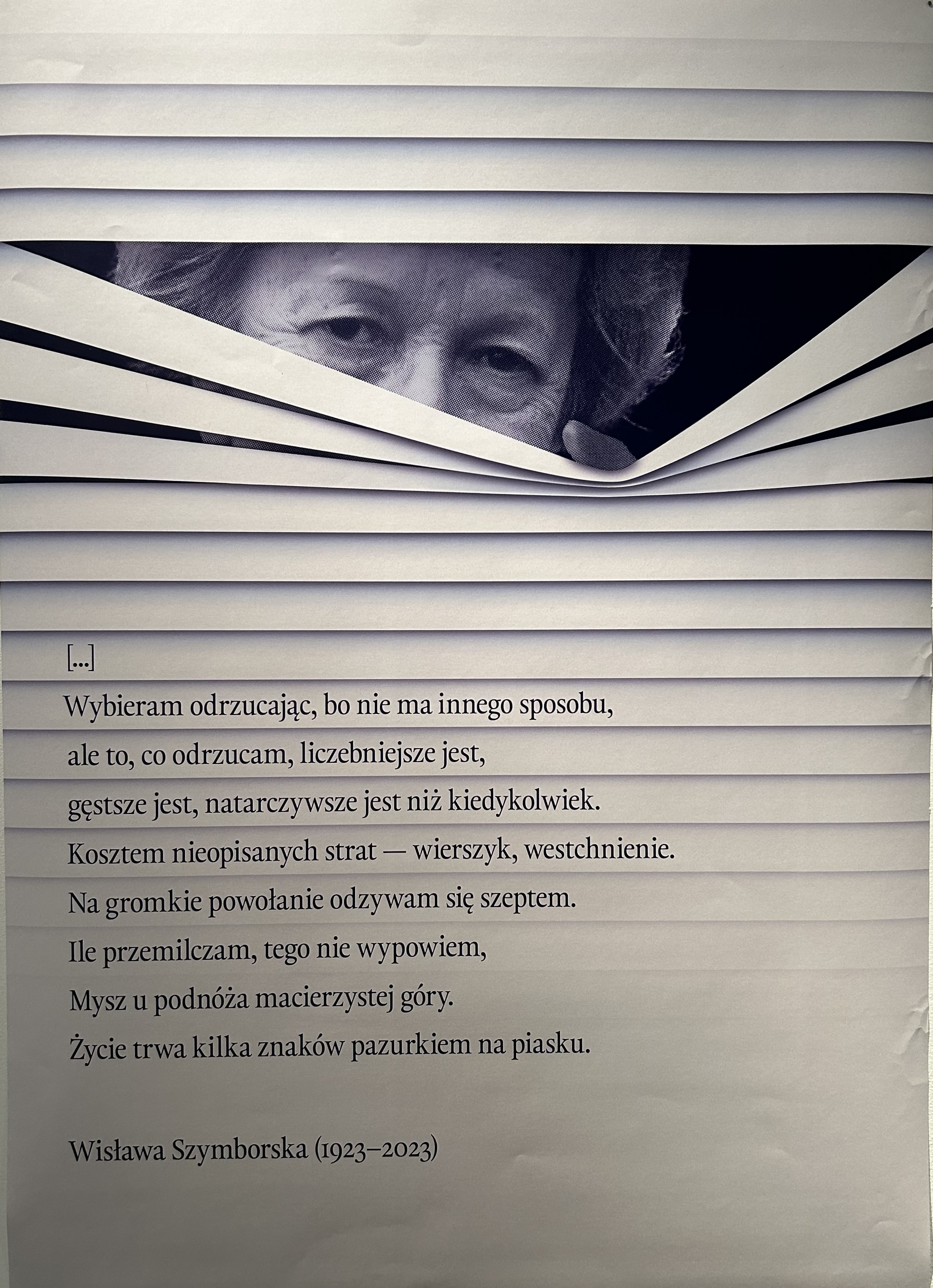 Potem przeszliśmy do analizy trzech wierszy Wisławy Szymborskiej: Nic dwa razy, Urodziny i Jeszcze.