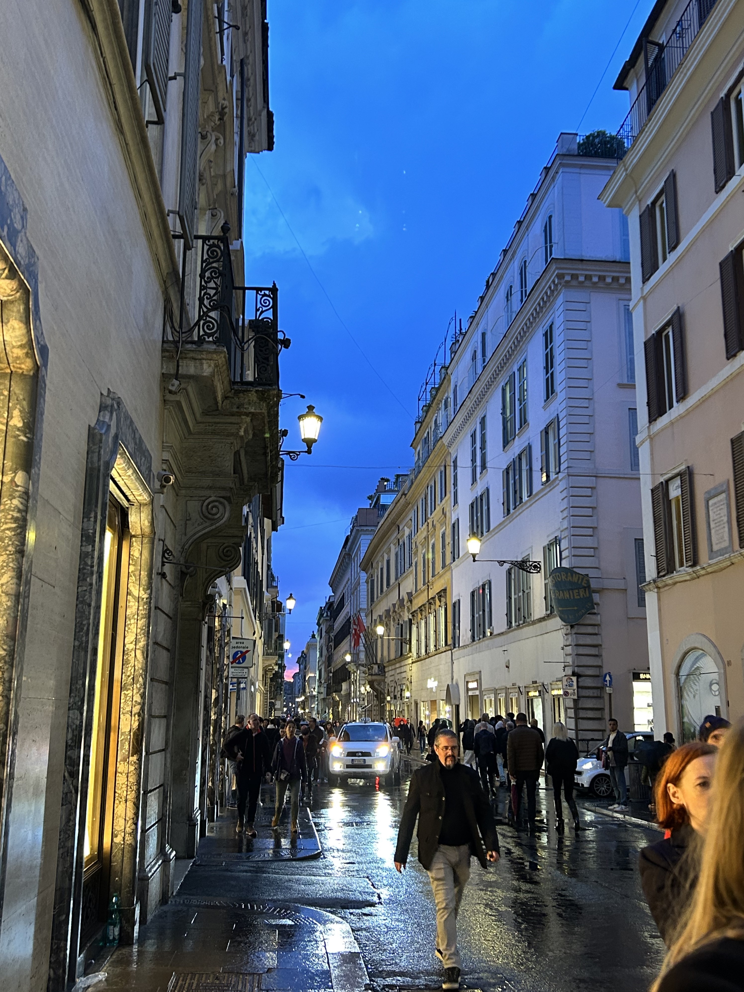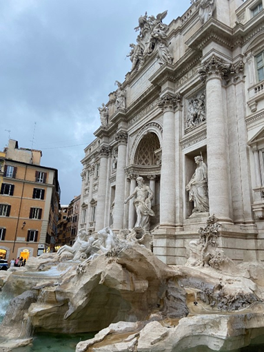 Która część wydarzenia podobała mi się najbardziej? Nie lada wyzwaniem była odpowiedź na to pytanie. W pamięć zapadły mi szczególnie słowa wygłoszone przez prof. Teresę Walas, która przybliżyła nam postać Wisławy Szymborskiej sprawiając, że mogliśmy wejść na chwilę do jej świata i poczuć się jakbyśmy znali ją osobiście. Poza konferencją, podczas której mogliśmy wysłuchać wielu znakomitych gości, ciekawymi i pożytecznymi okazały się również warsztaty przekładowe prowadzone przez prof. Andreę Ceccherelliego. Z czystą przyjemnością słuchało się jego wykładu. Mieliśmy możliwość porównania trzech wersji językowych wierszy Szymborskiej (litewskiej, ukraińskiej oraz włoskiej) podczas żywej dyskusji z kolegami z Litwy i Ukrainy, którzy na tą okazję specjalnie przyjechali do Rzymu. Analiza tych przekładów była ciekawym doświadczeniem, które pokazało nam jak każdy z tych języków radzi sobie z oddaniem oryginału oraz jakie główne problemy napotyka na swojej drodze. Praca i analiza tych wierszy po raz kolejny uświadomiła mi jak trudną profesją jest bycie tłumaczem. Drugiego dnia mieliśmy natomiast możliwość uczestniczenia w warsztatach z tworzenia podcastu, które pokazały nam proces produkcyjny od powstania pomysłu, aż do jego realizacji. Zdobytą wiedzę na pewno będziemy mieli okazję wykorzystać podczas tworzenia naszego własnego podcastu. Nie mogłabym jeszcze nie wspomnieć o mojej subiektywnej wisience na torcie minionych dni, jaką był spacer po Rzymie polskimi śladami. Jako miłośniczka historii i zapalona turystka z przyjemnością chłonęłam nowe ciekawostki, o których wcześniej nie miałam pojęcia, podążając ścieżkami św. Stanisława Kostki, Cypriana Kamila Norwida, Juliusza Słowackiego, a także polskiej królowej Marii Kazimiery, pieszczotliwie zwanej Marysieńką. Deszcz podczas wycieczki był nam niestraszny i nie mogło również zabraknąć przystanku pod słynną Fontanną di Trevi, gdzie podczas chwili przerwy udało mi się zrobić jedno zdjęcie.