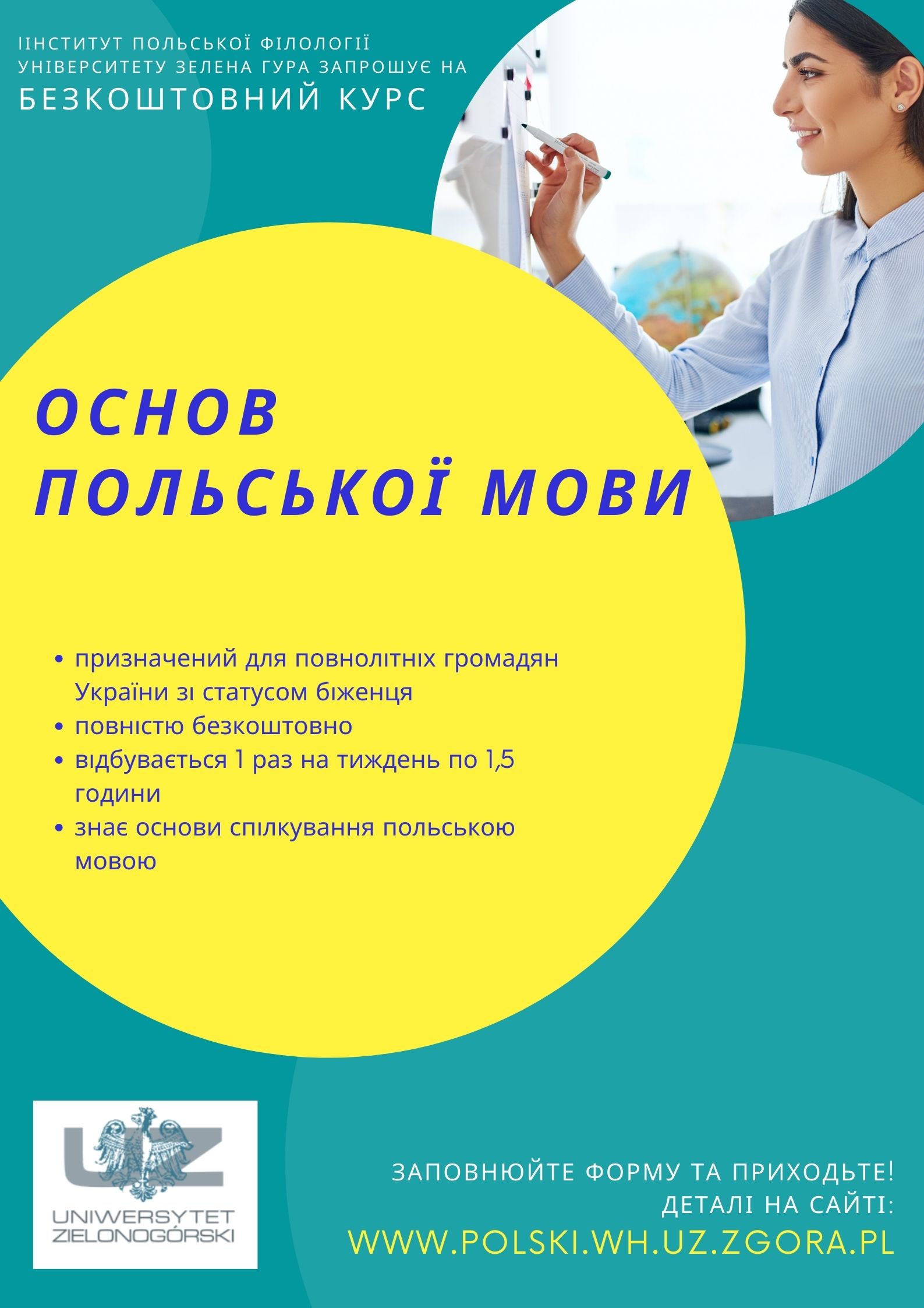 Instytut Filologii Polskiej Uniwersytetu Zielonogórskiego organizuje bezpłatne kurs języka polskiego dla cudzoziemców z Ukrainy.