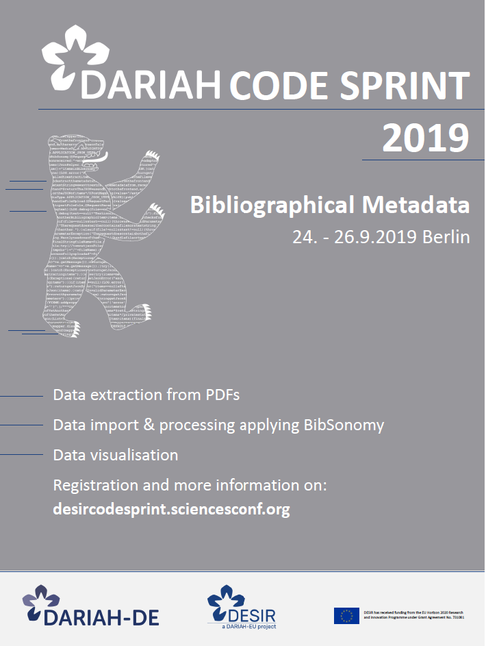 W dniach 24-26 września w Berlinie odbędzie się DARIAH Code Sprint 2019, organizowany w ramach projektu DESIR. Będzie on poświęcony metadanym bibliograficznym.