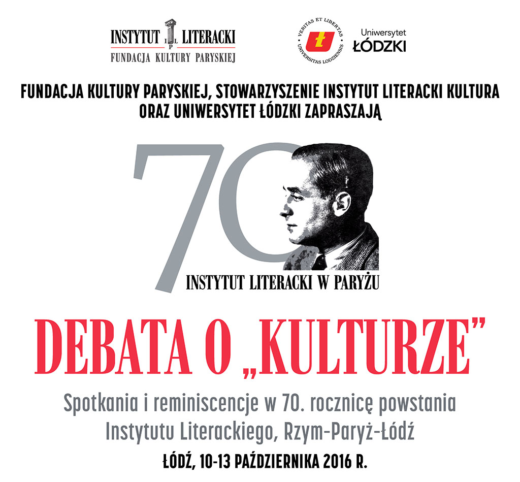 Fundacja Kultury Paryskiej, Stowarzyszenie Instytut Literacki Kultura oraz Uniwersytet Łódzki zapraszają na debatę o "Kulturze". Spotkania i reminiscencje w 70. rocznicę powstania Instytutu Literackiego, Rzym–Paryż–Łódź