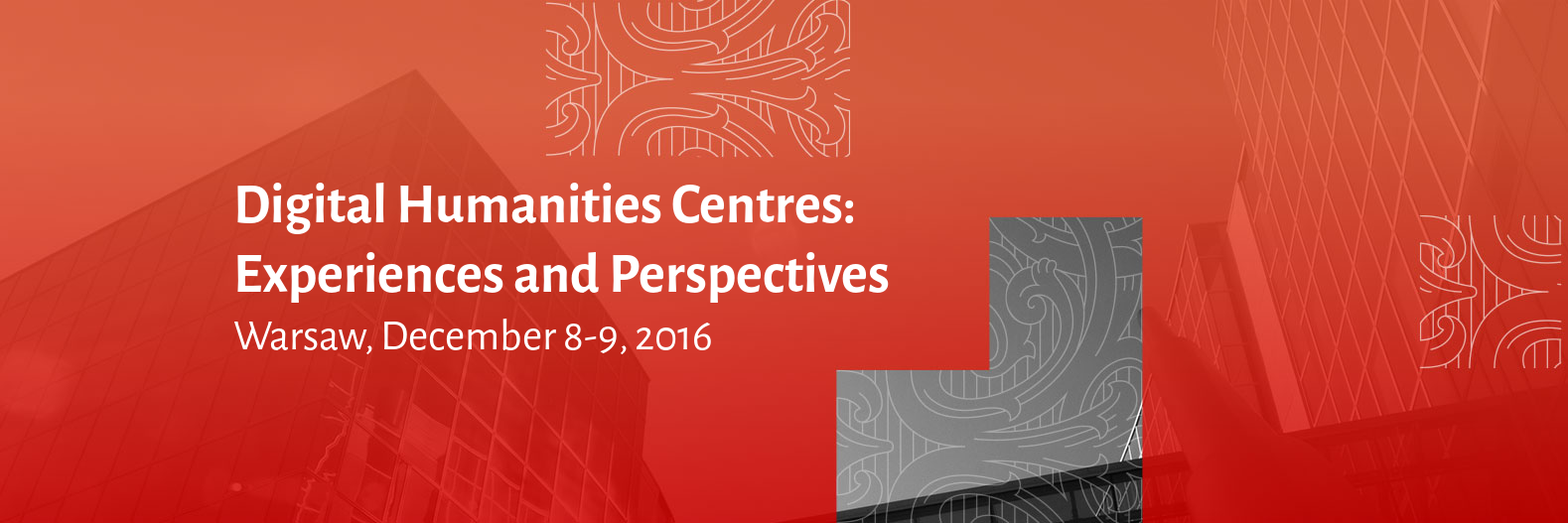 Laboratorium Cyfrowe Humanistyki UW organizuje w dniach 8 - 9 grudnia 2016 r. konferencję "Digital Humanities Centres: Experiences and Perspectives”. Konferencja będzie poświęcona instytucjonalnym aspektom cyfrowej humanistyki. Głównymi mówcami będą Frédéric Kaplan, Jan Christoph Meister, Gerhard Lauer i Susan Schreibman.