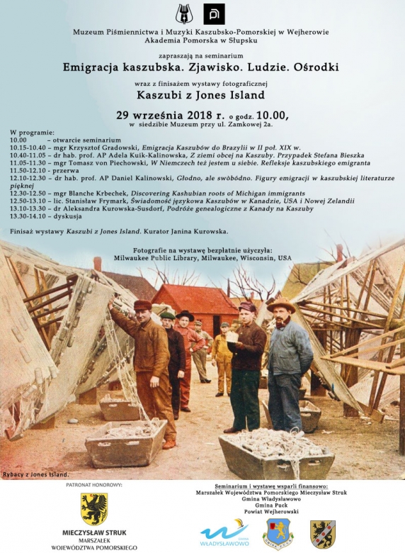 wraz z finisażem wystawy fotograficznej Kaszubi z Jones Island 29 września 2018 r. o godz. 10.00 w siedzibie Muzeum przy ul. Zamkowej 2a. Kierownik merytoryczny seminarium - dr hab. prof. nadzw. Daniel Kalinowski
