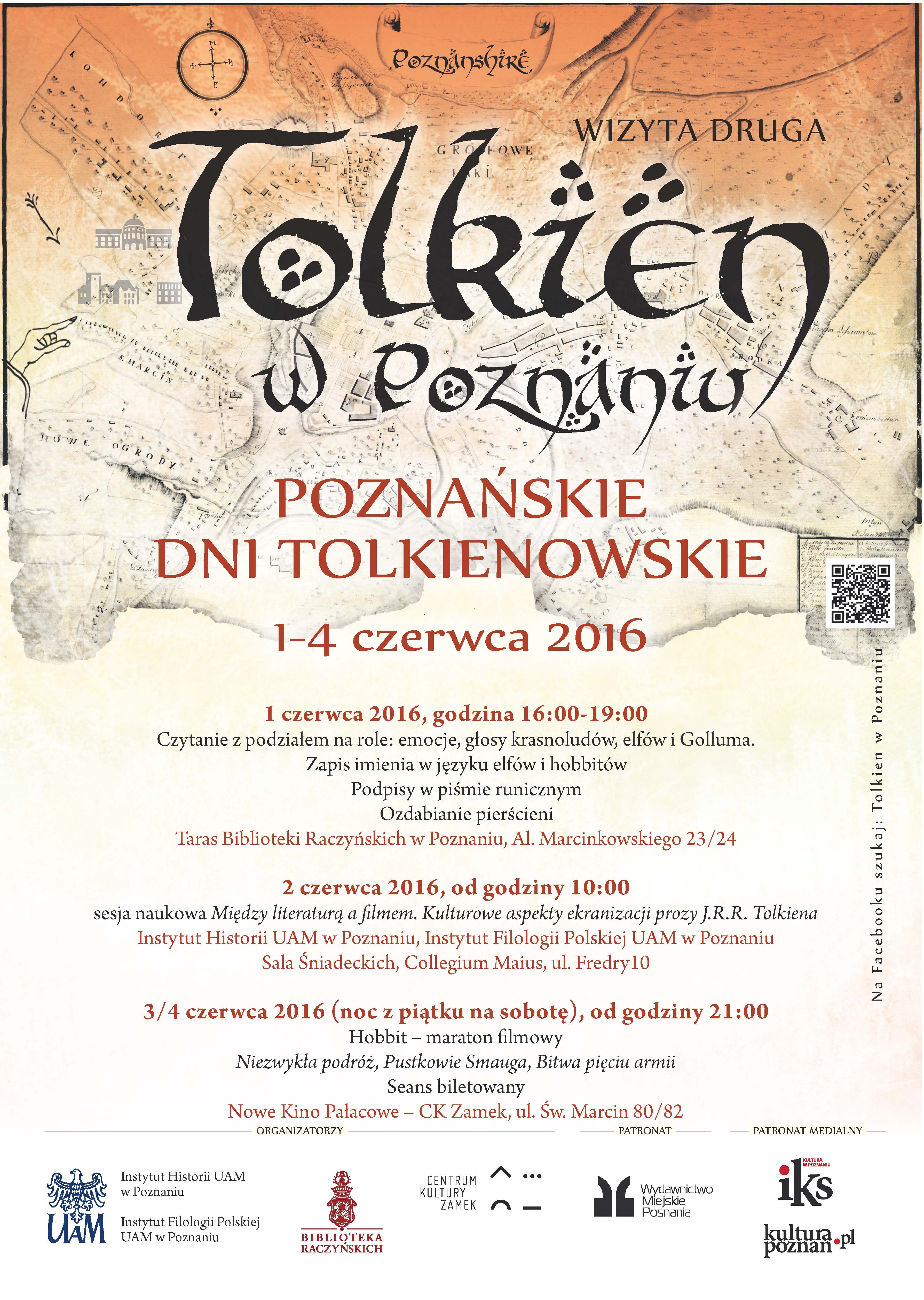 W dniach 1-4 czerwca 2016 r. odbędą się II Poznańskie Dni Tolkienowskie. Fani twórczości angielskiego pisarza będą mogli wziąć udział w wykładach poświęconych jego powieściom (program sesji naukowej Między literaturą a filmem. Kulturowe aspekty ekranizacji prozy J.R.R. Tolkiena – w załączniku) i ich ekranizacjom, nauczyć się pisać w języku elfów czy wziąć udział w maratonie filmowym. Szczegóły na plakacie.
