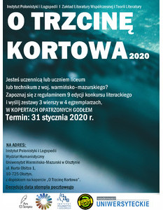 Regulamin dziewiątej edycji „Konkursu Literackiego o Trzcinę Kortowa”
