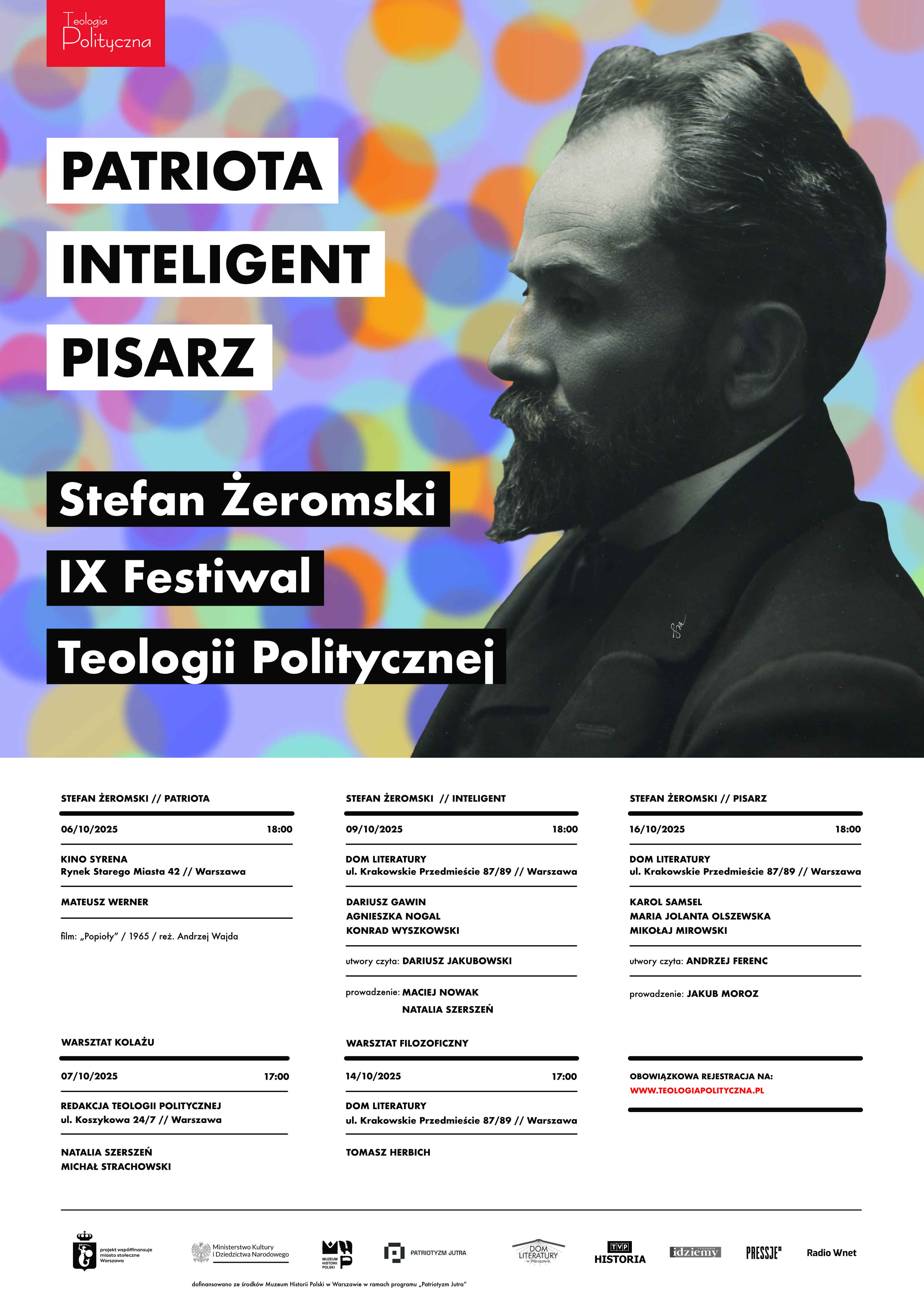 Pełny harmonogram wydarzeń dostępny jest na stronie: https://teologiapolityczna.pl/ix-festiwal-teologii-politycznej-stefan-zeromski-patriota-inteligent-pisarz.