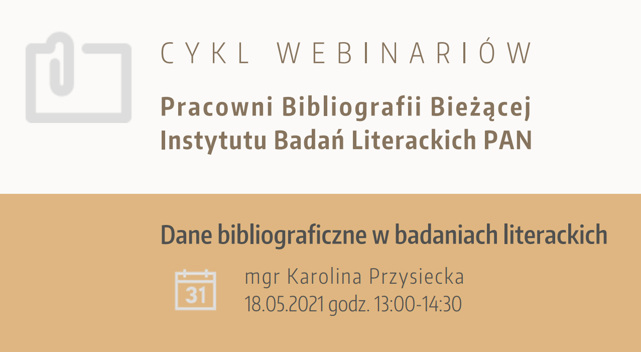 Karolina Przysiecka: Dane bibliograficzne w badaniach literackich / z cyklu webinariów Pracowni Bibliografii Bieżącej Instytutu Badań Literackich PAN