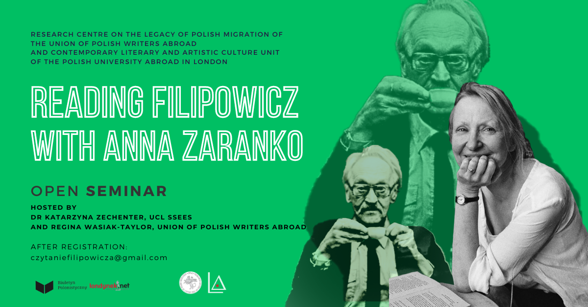 Serdecznie zapraszamy na czwarte spotkanie z cyklu „Czytanie Filipowicza". W fascynujący świat twórczości pisarza tym razem wejdziemy podczas rozmowy z Anną Zaranko, tłumaczką twórczość Filipowicza na język angielski.